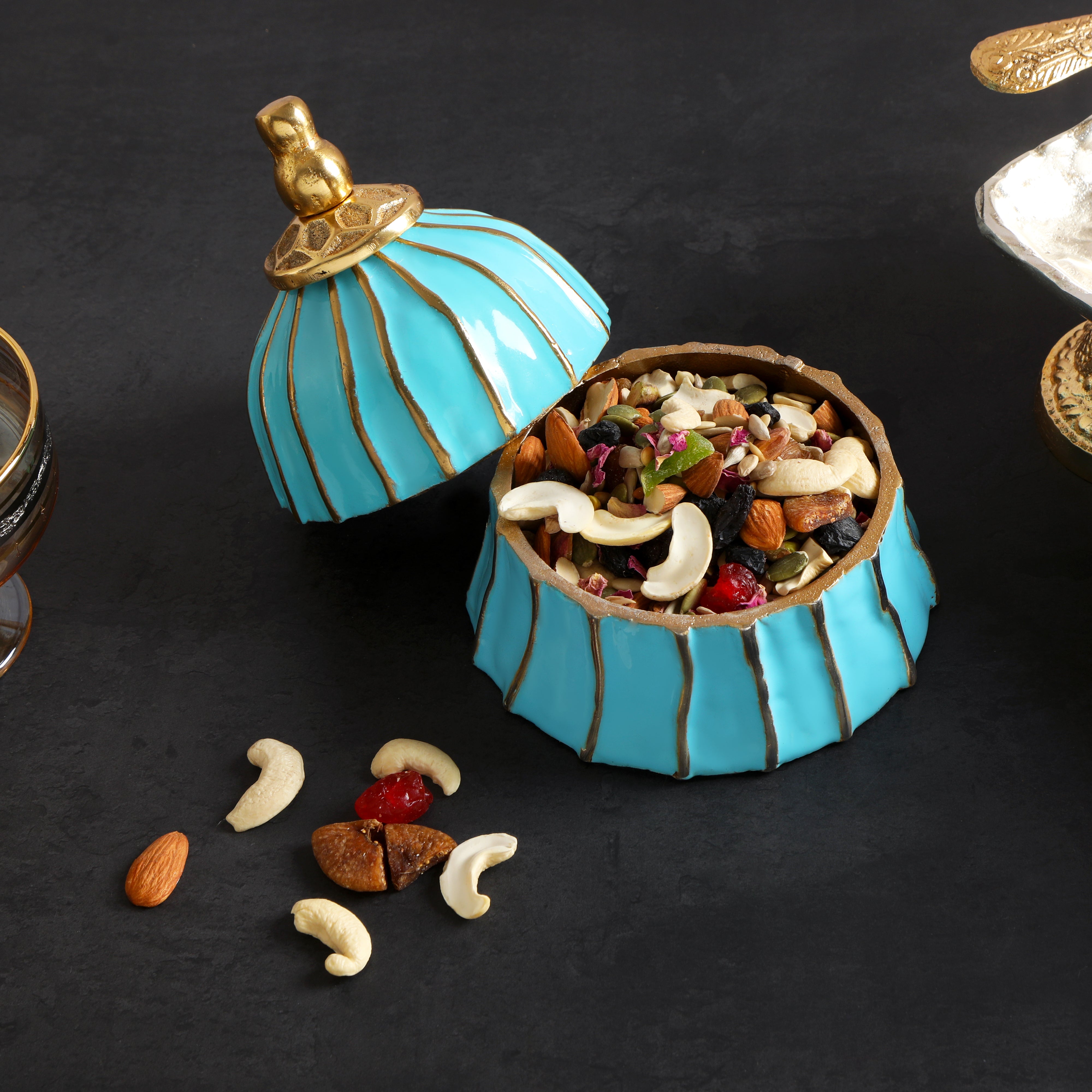 Medium Glass Jar With Gold Metal Lid & Base - Gold