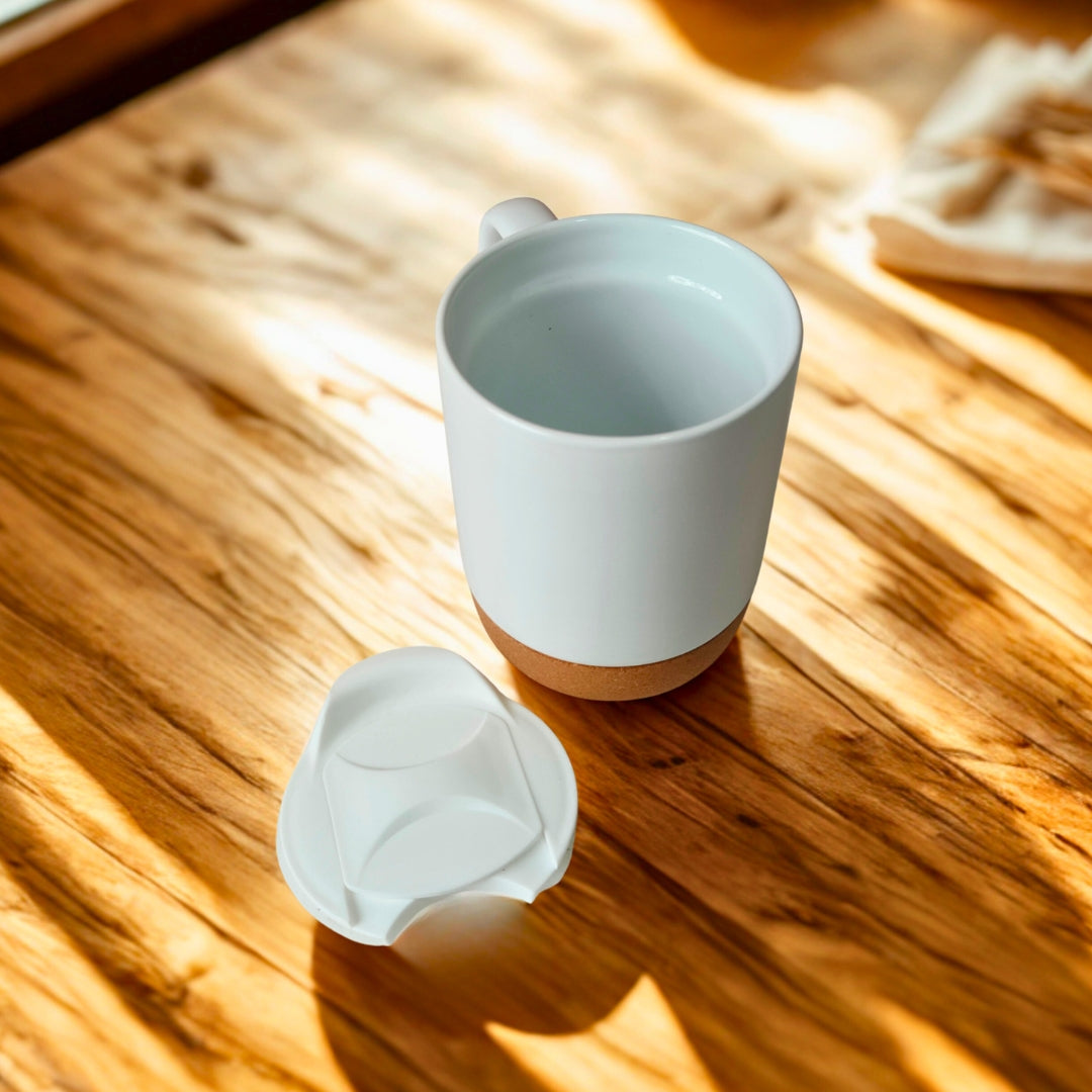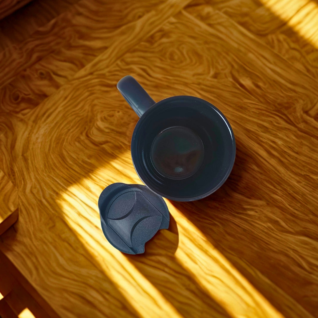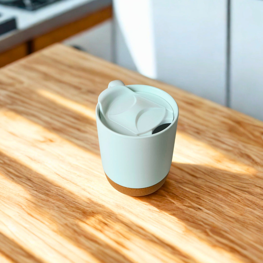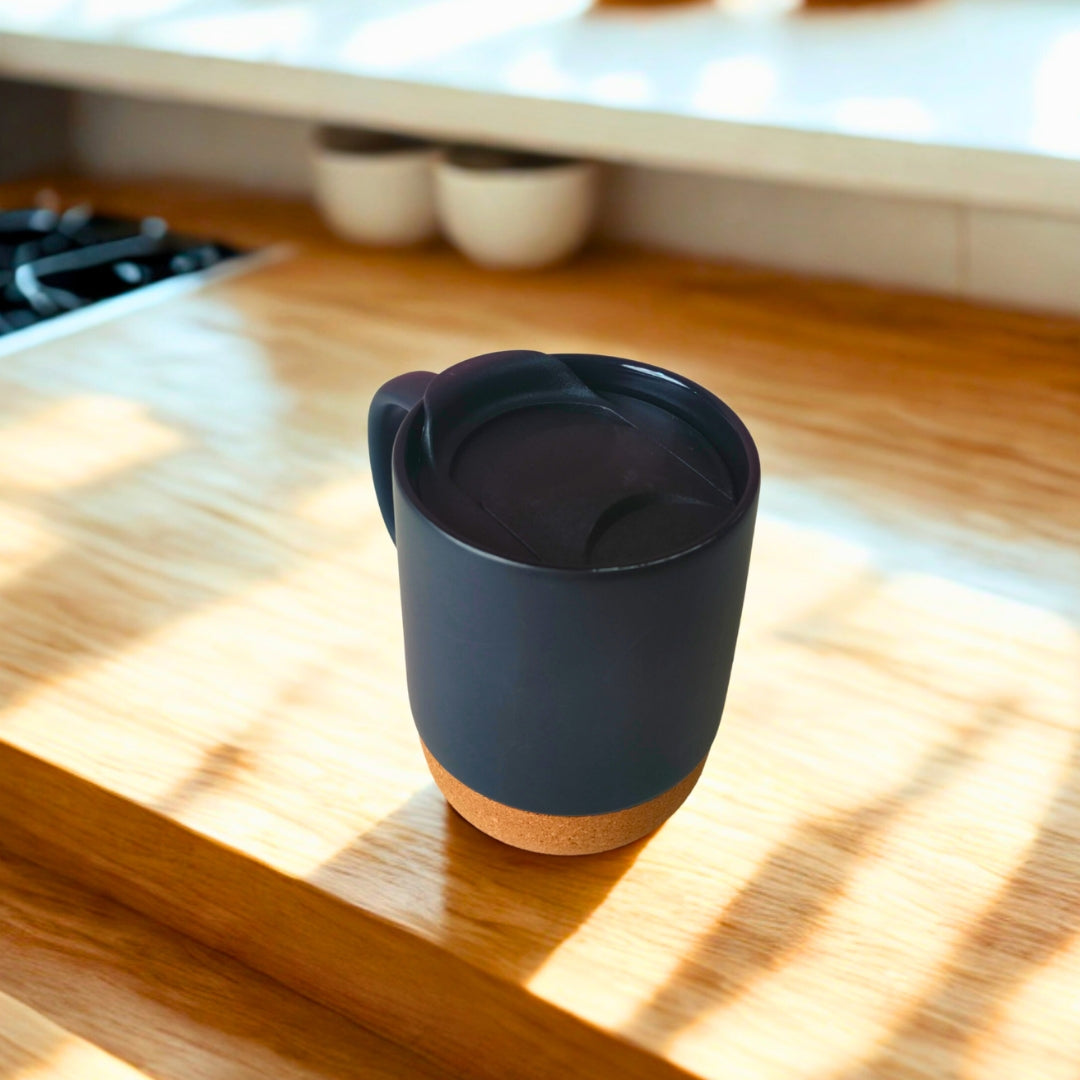 Black Stainless Steel Mug With Cork And Plastic Lid
