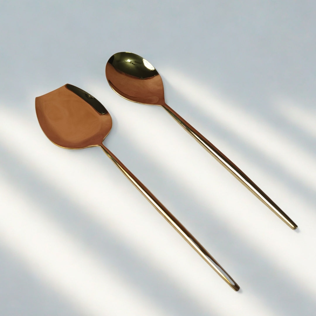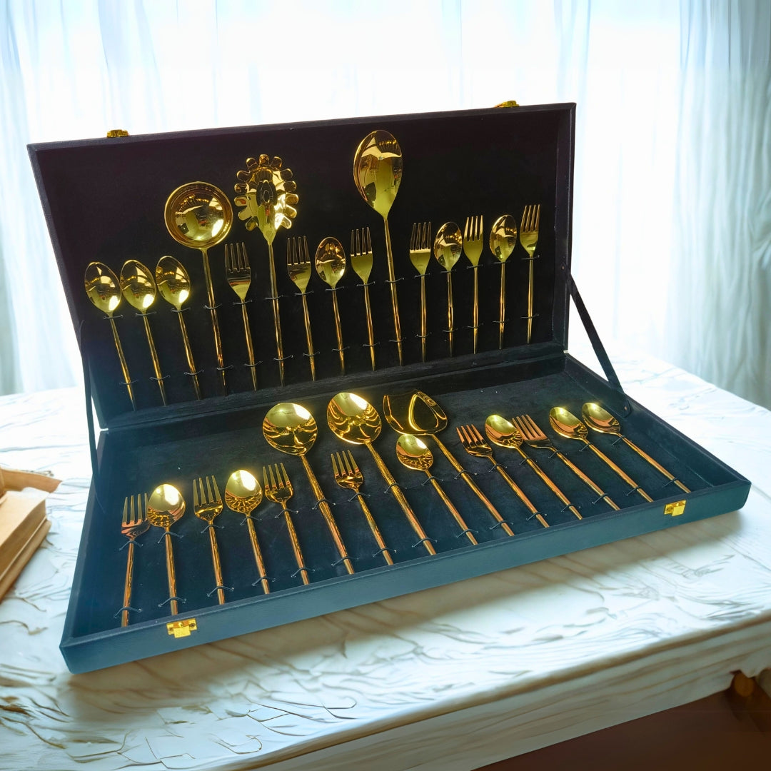 Gold Plated Serving Set With Spoon, Fork & Knife Set Of 30