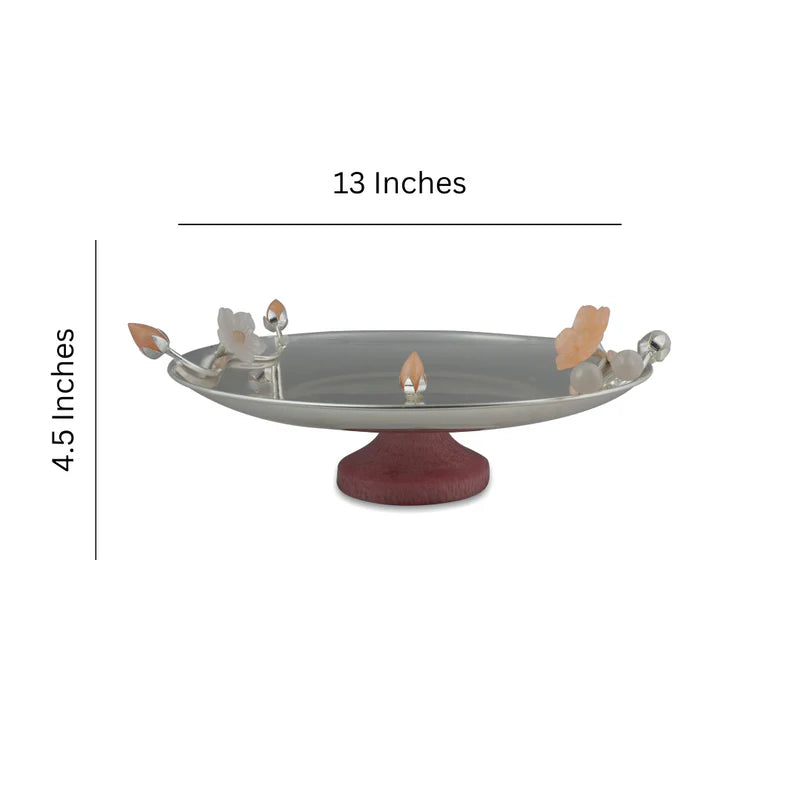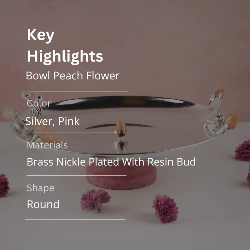 Brass Silver Plated Round Platter With Peach Resin Flower