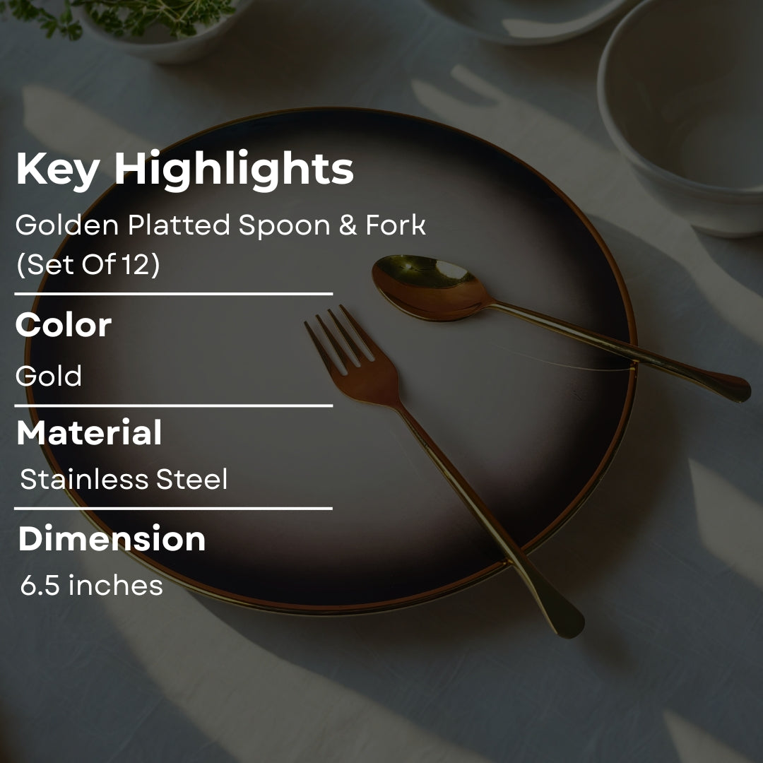 Cutlery Set of 12 - Gold Plated Flat Design