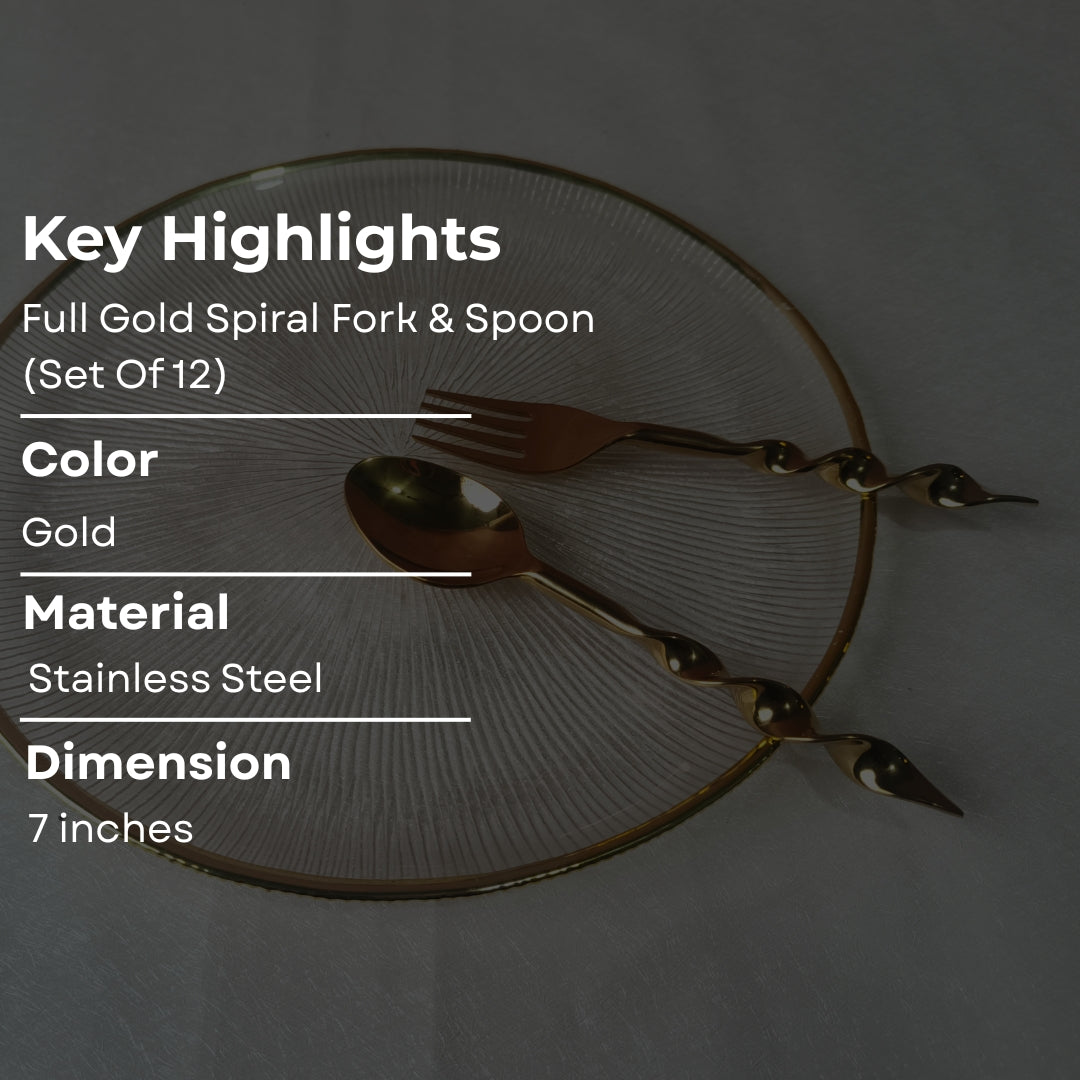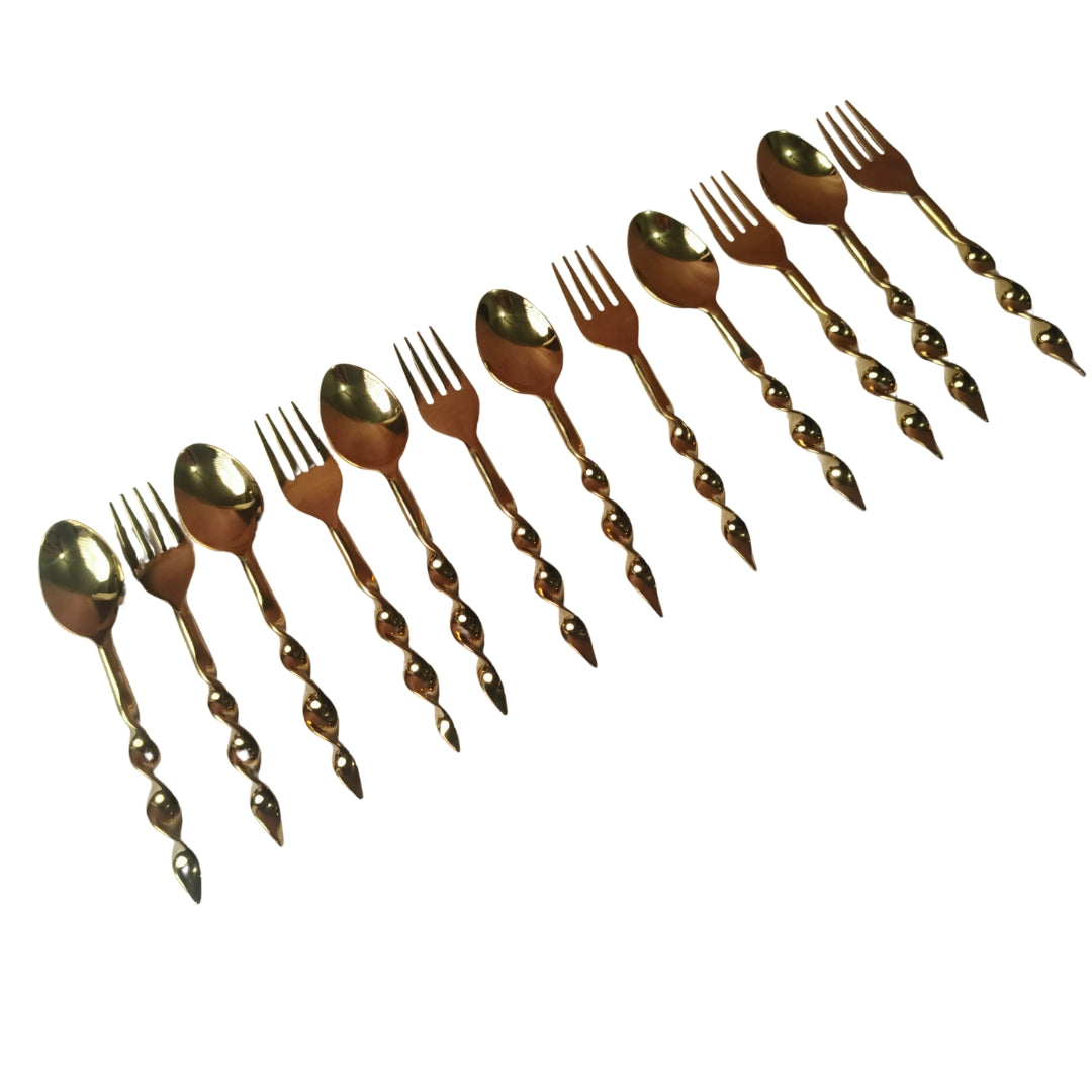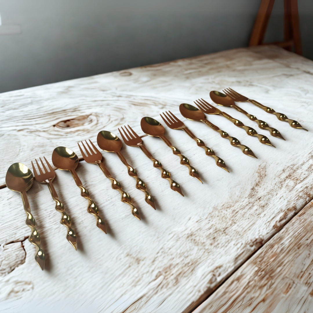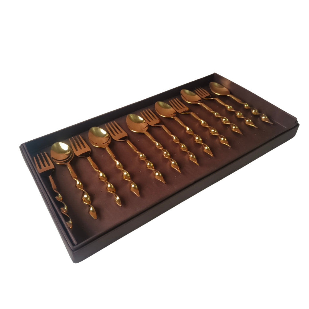 Cutlery Set of 12 - Gold Plated Spiral Design
