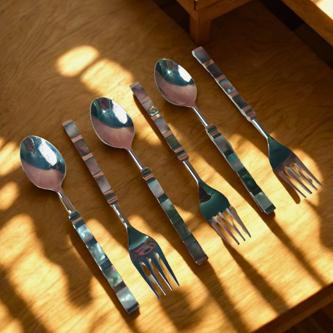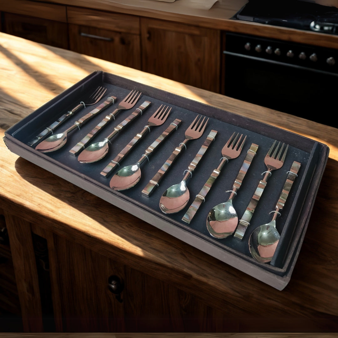 Cutlery Set of 12 - White Mother Of pearl lined design