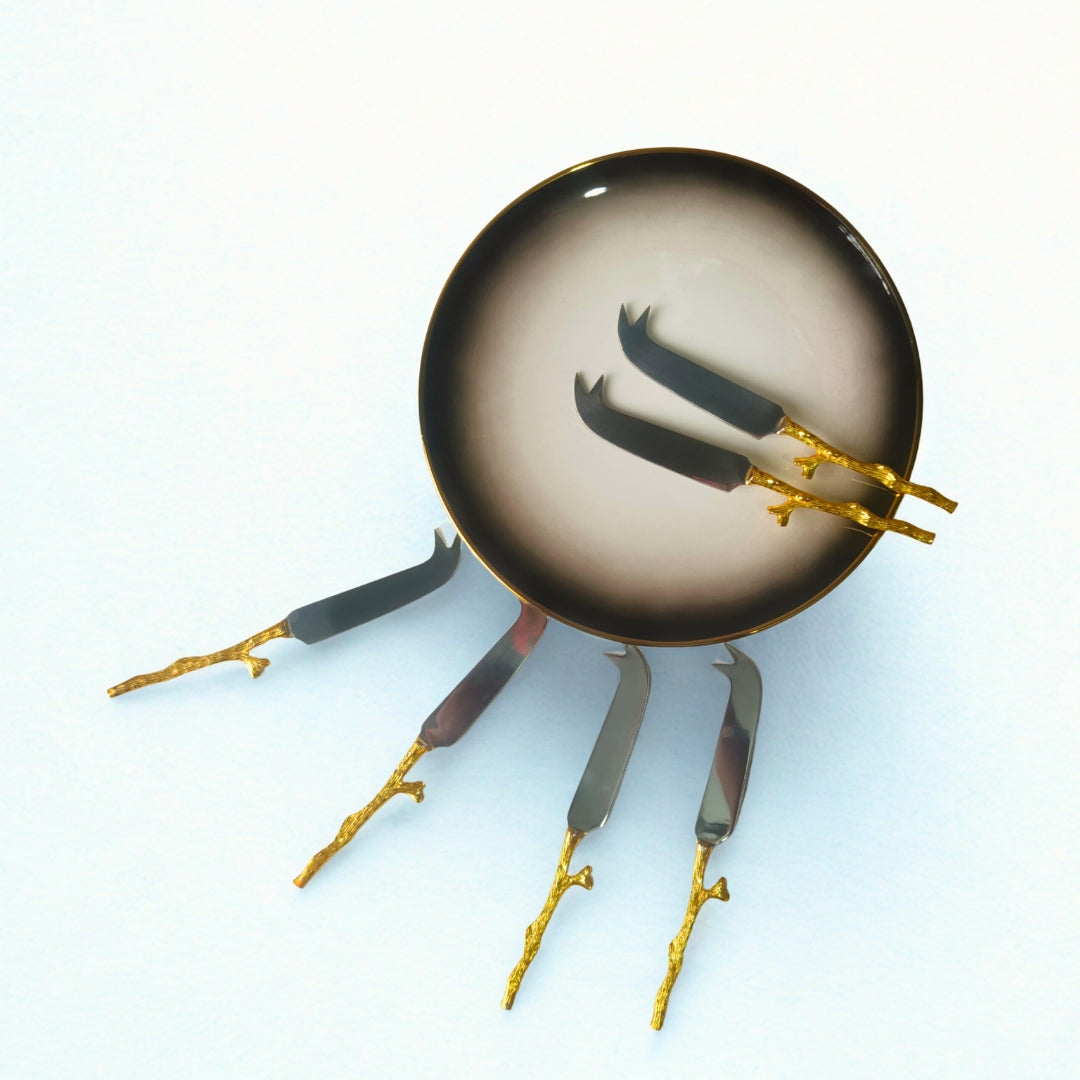 Cutlery Set Of 6 - Gold Twig Design Table Knife