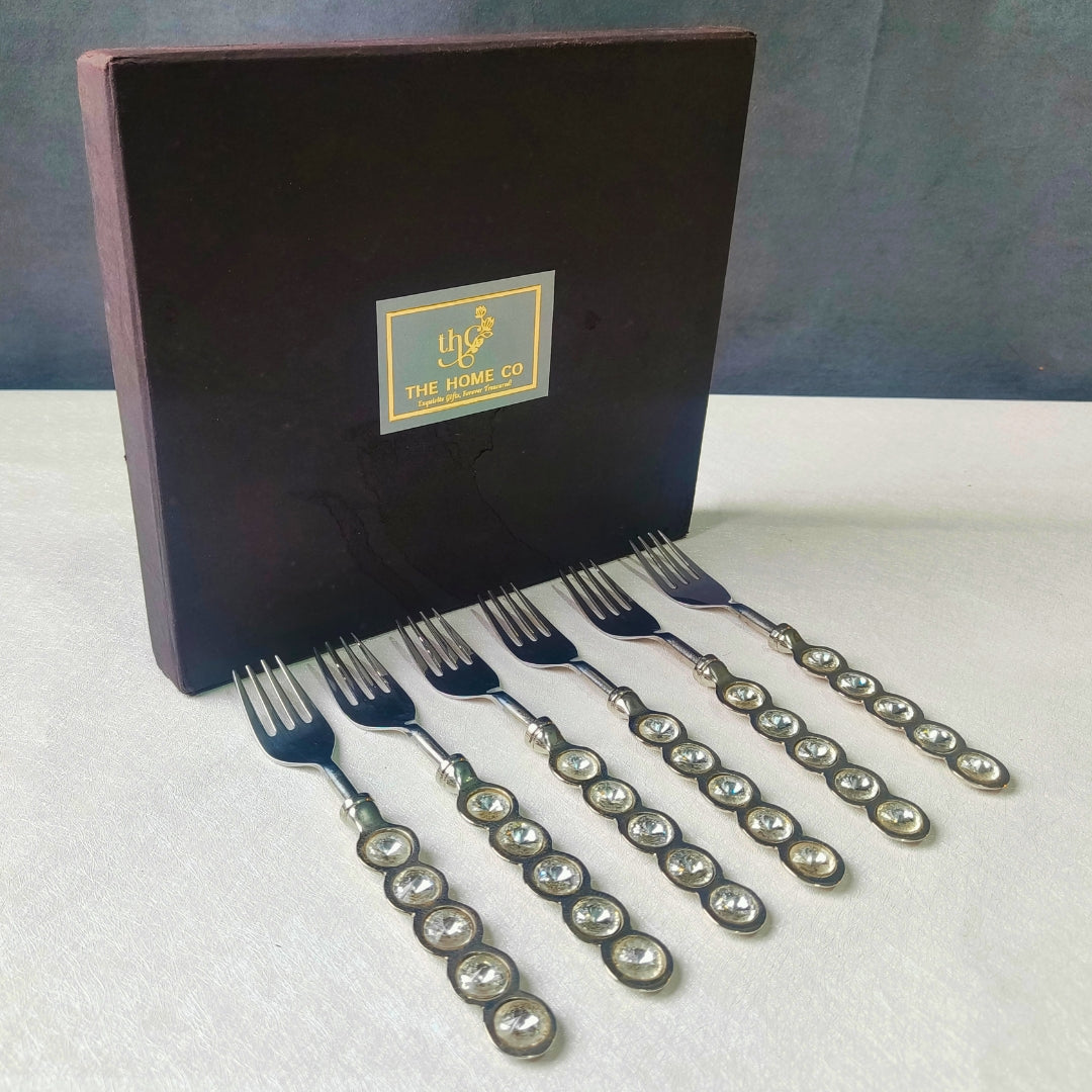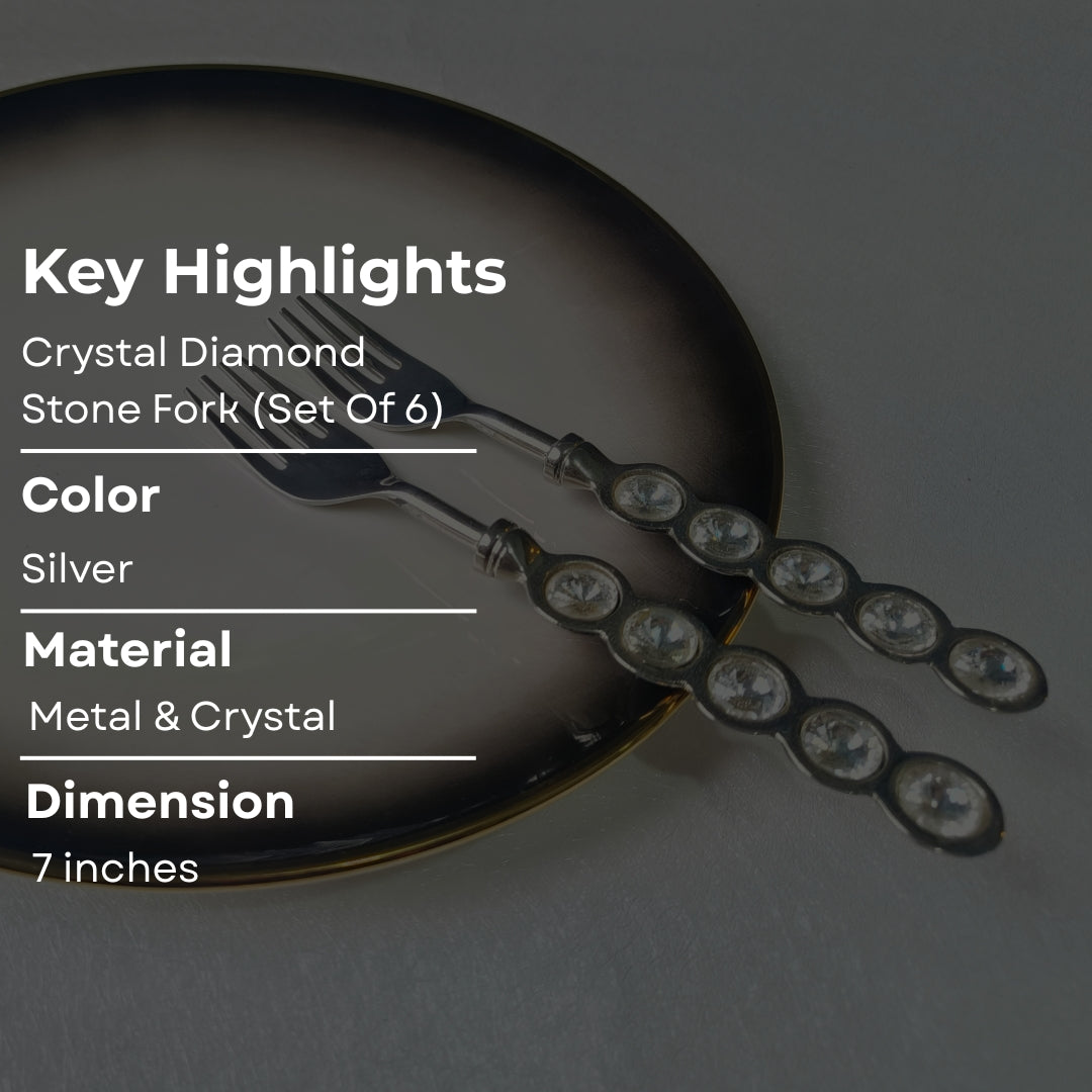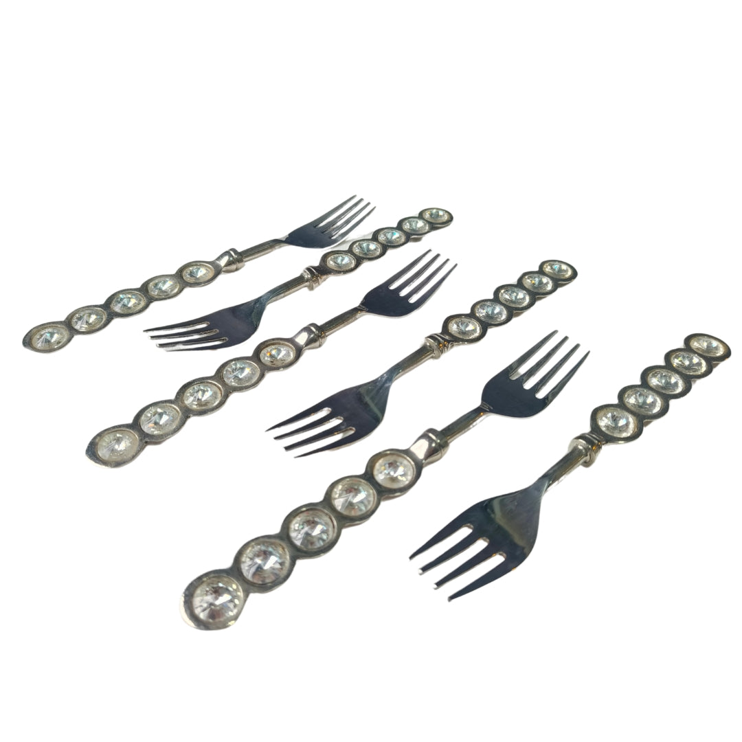 Cutlery Set Of 6 - Silver Crystal Stone Table Fork