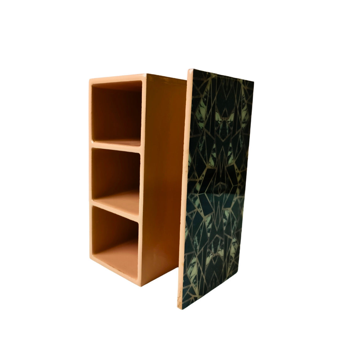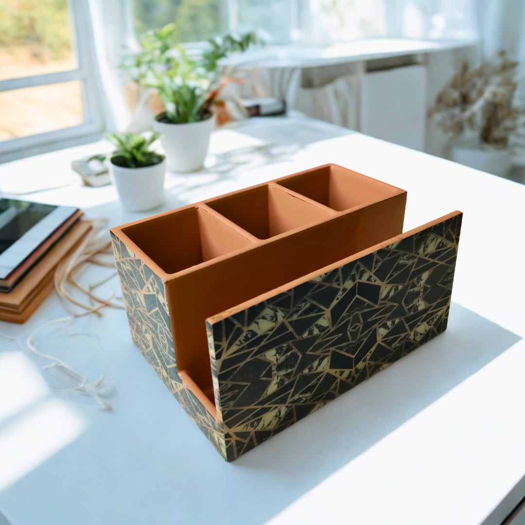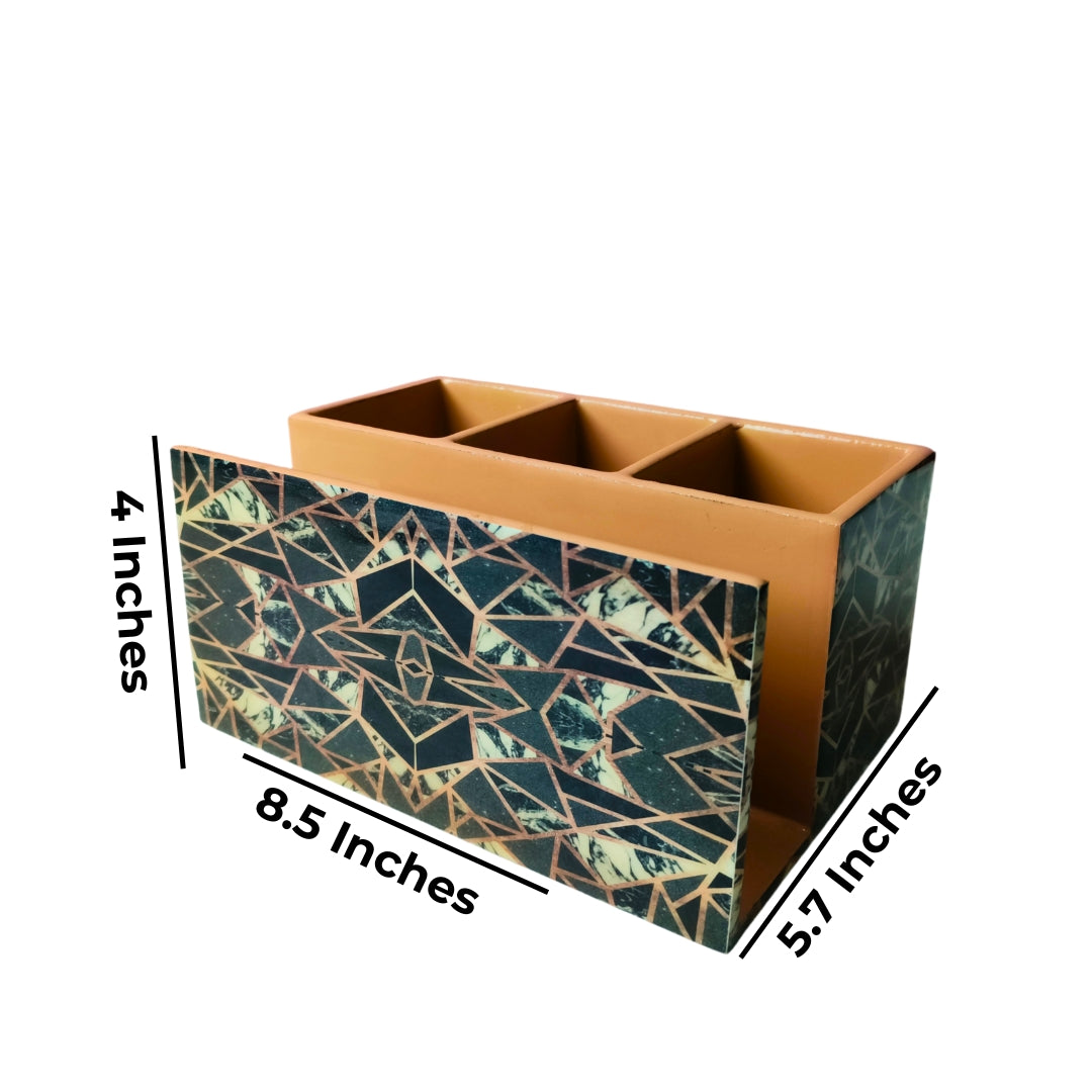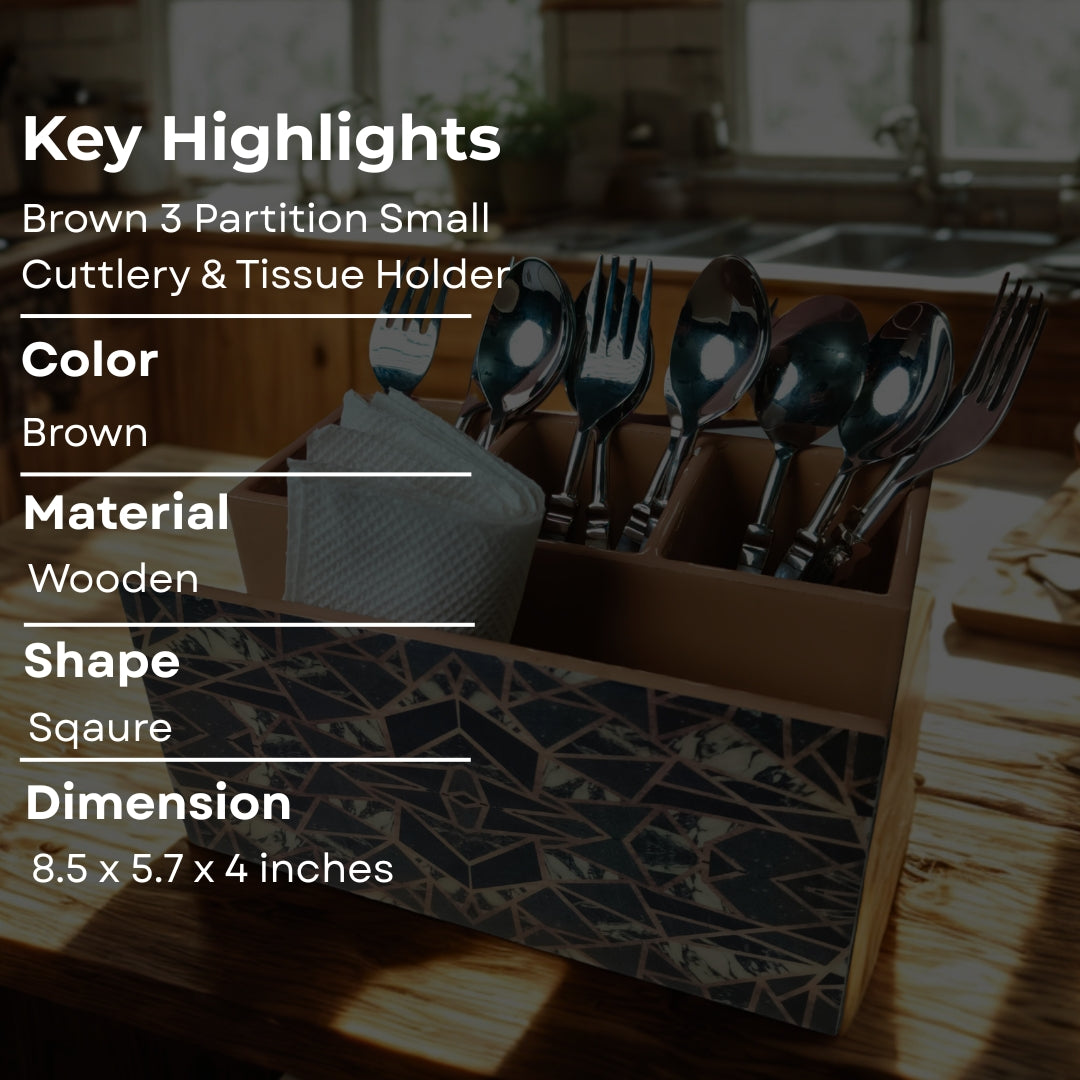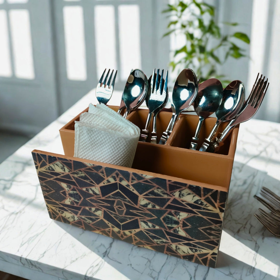 Cutlery tissue holder- Wooden 3 Partition Brown Abstract Print With Enamel