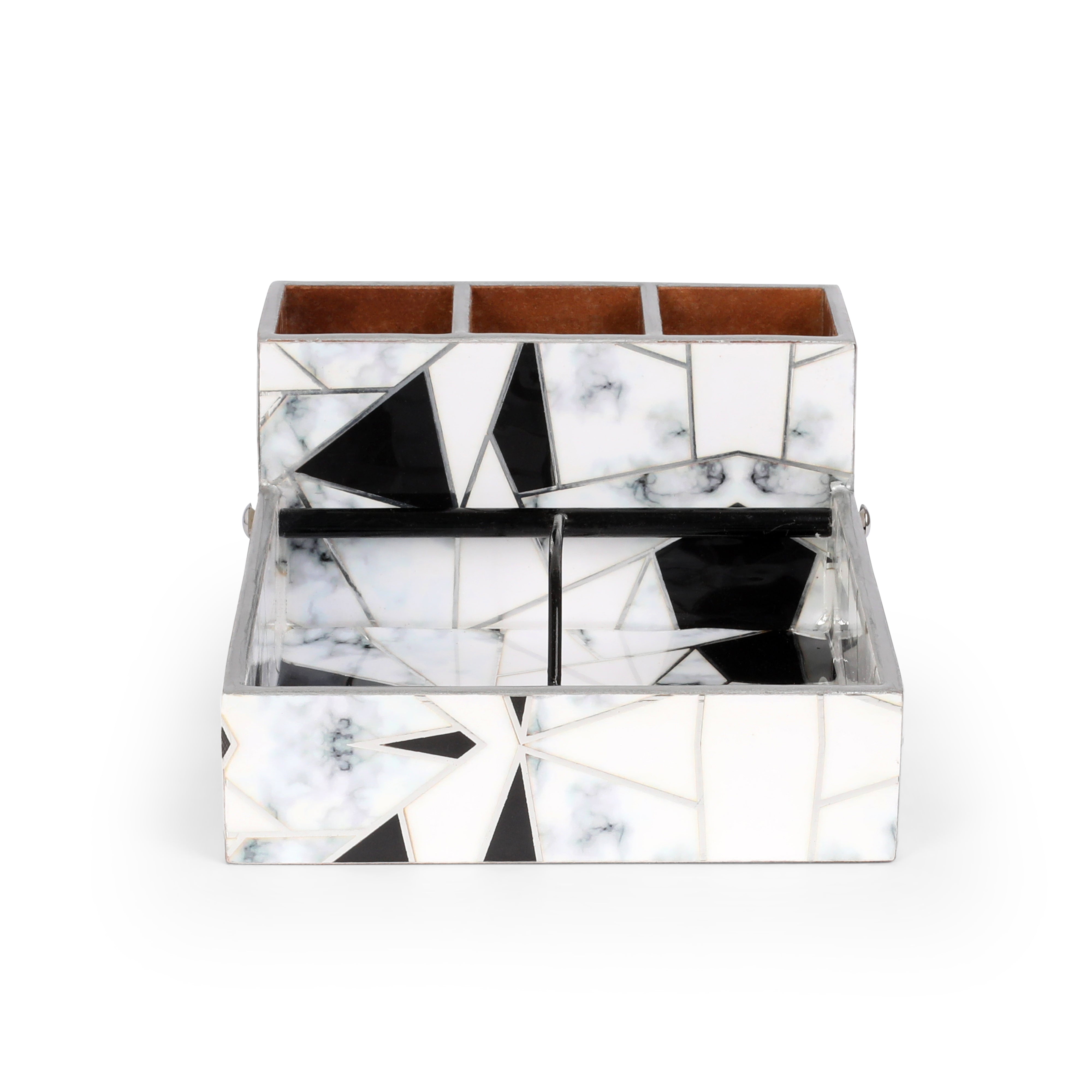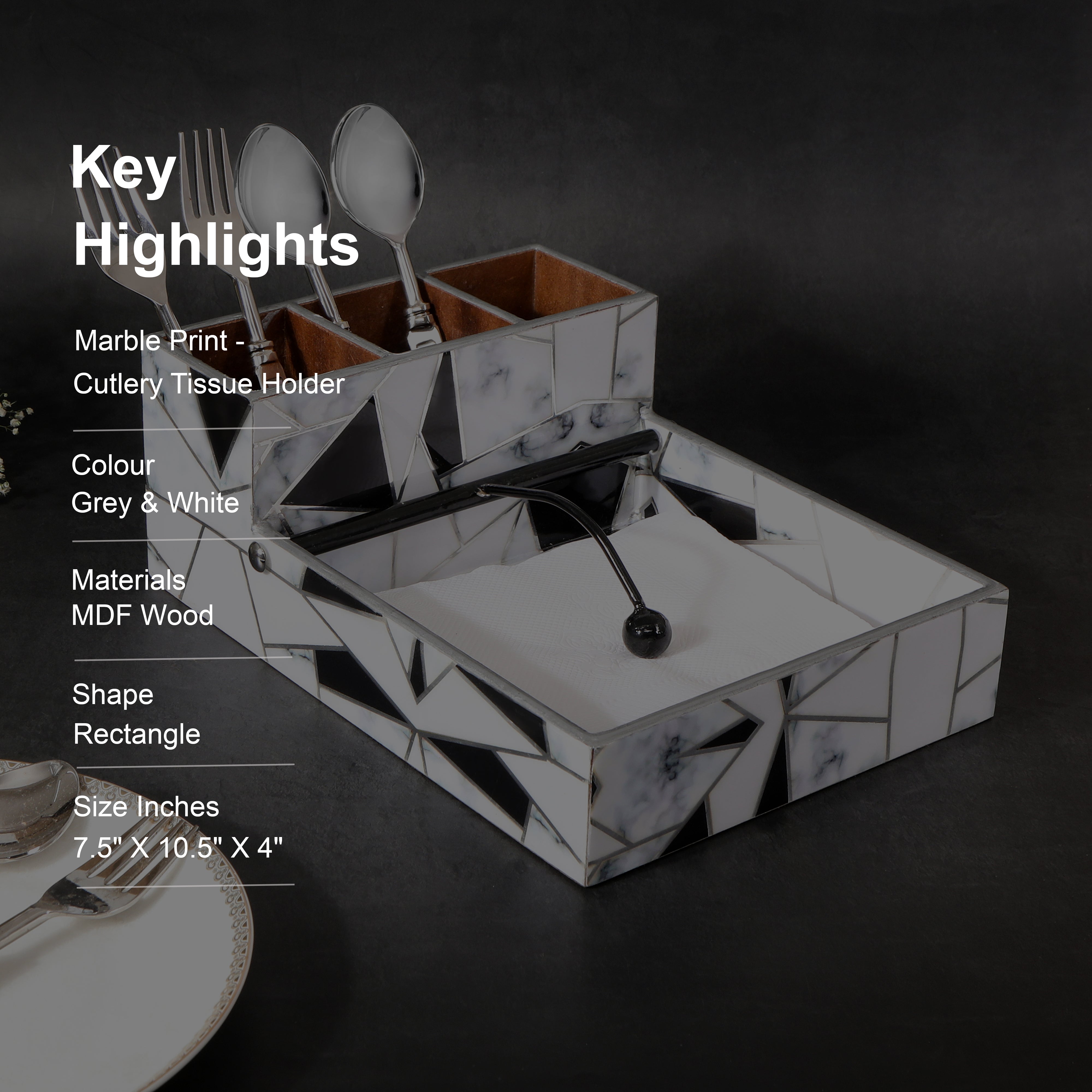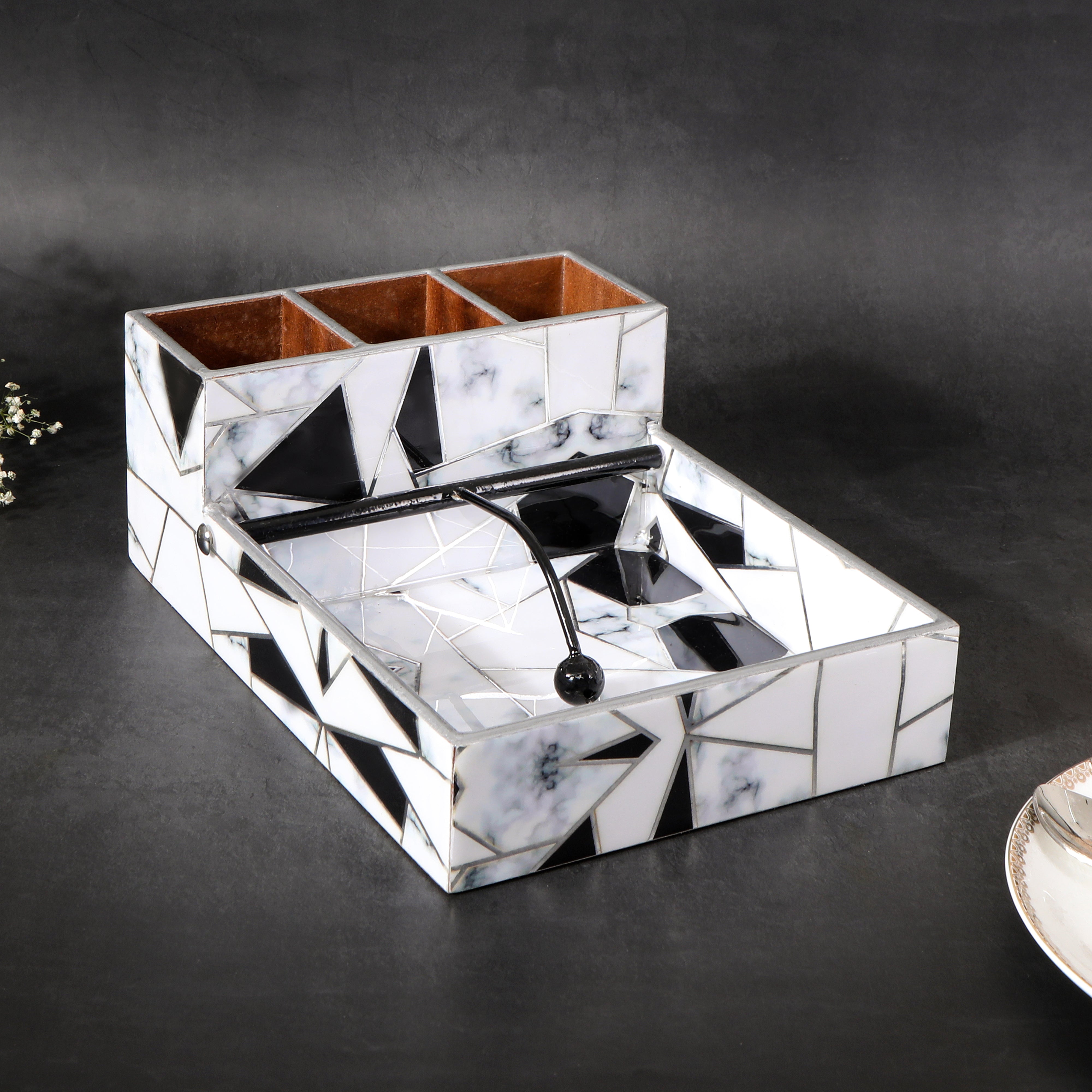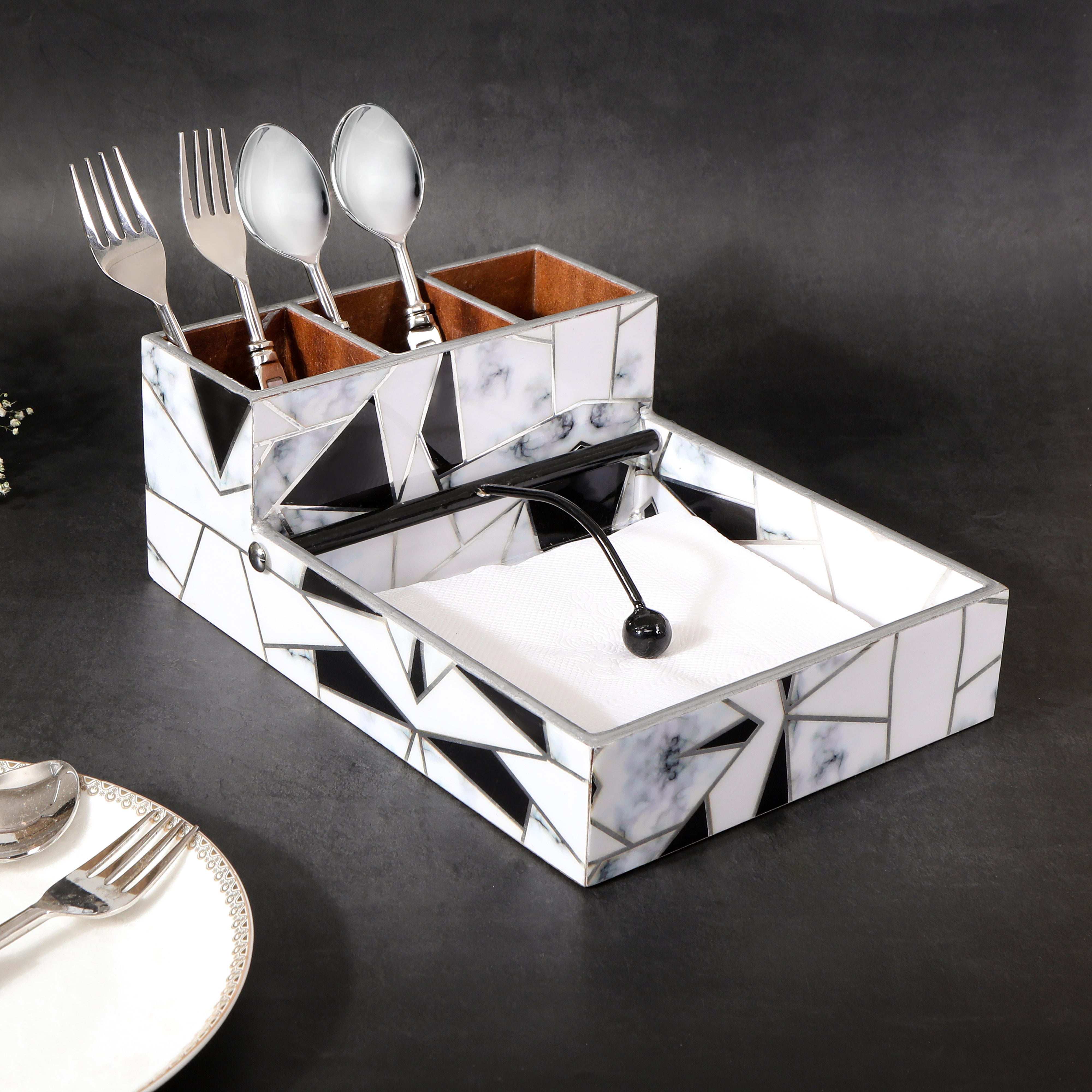 Large Cutlery Tissue Holder - Grey White Triangle