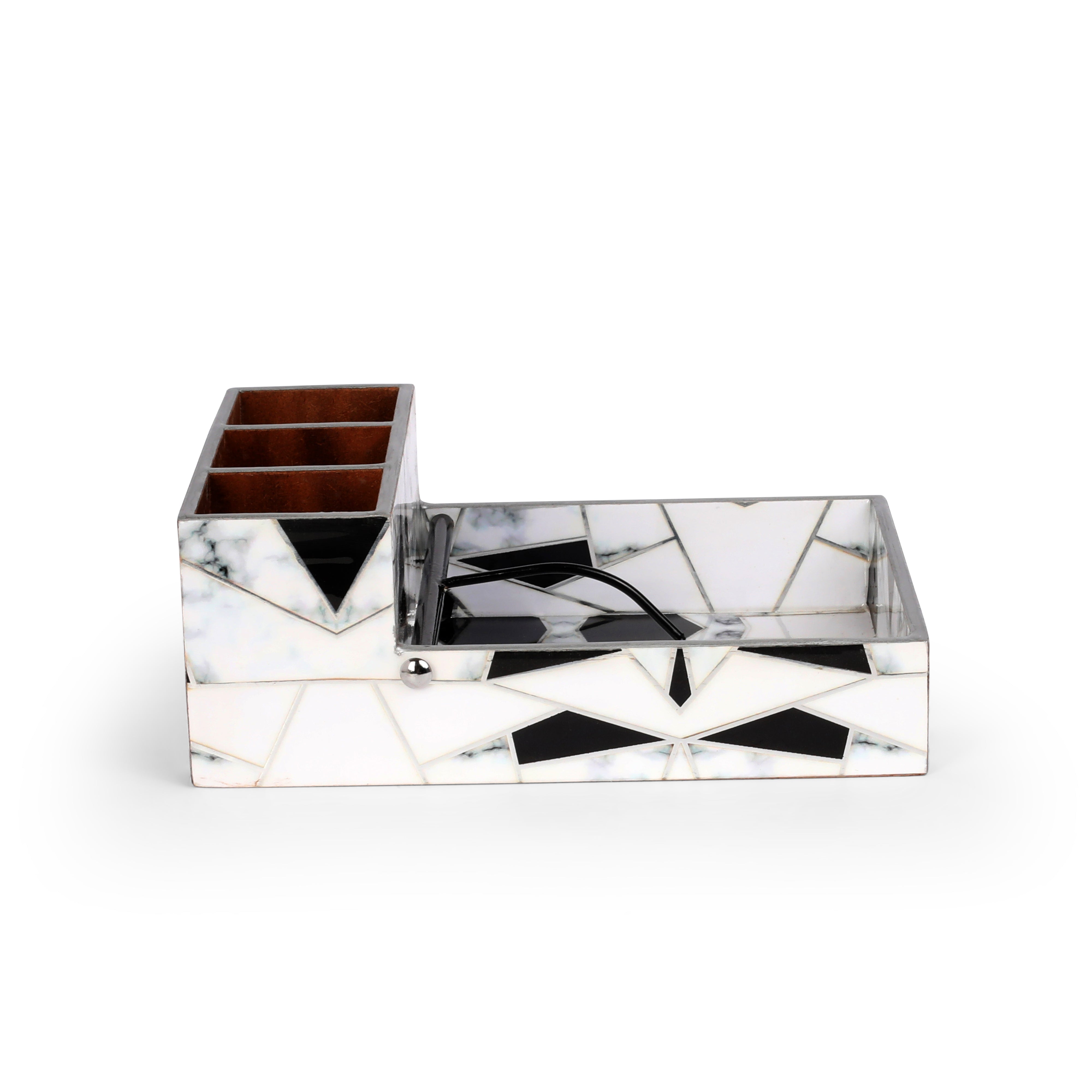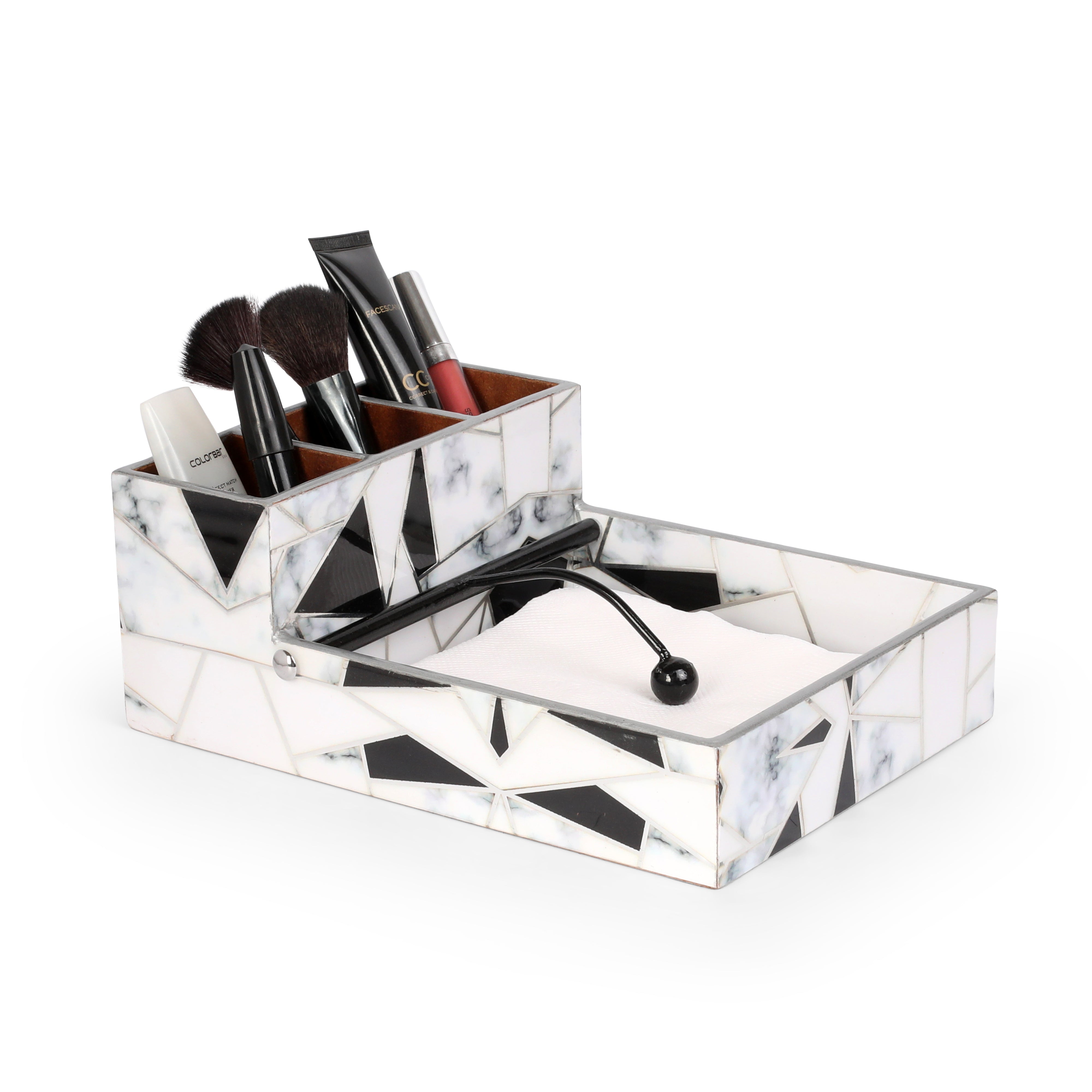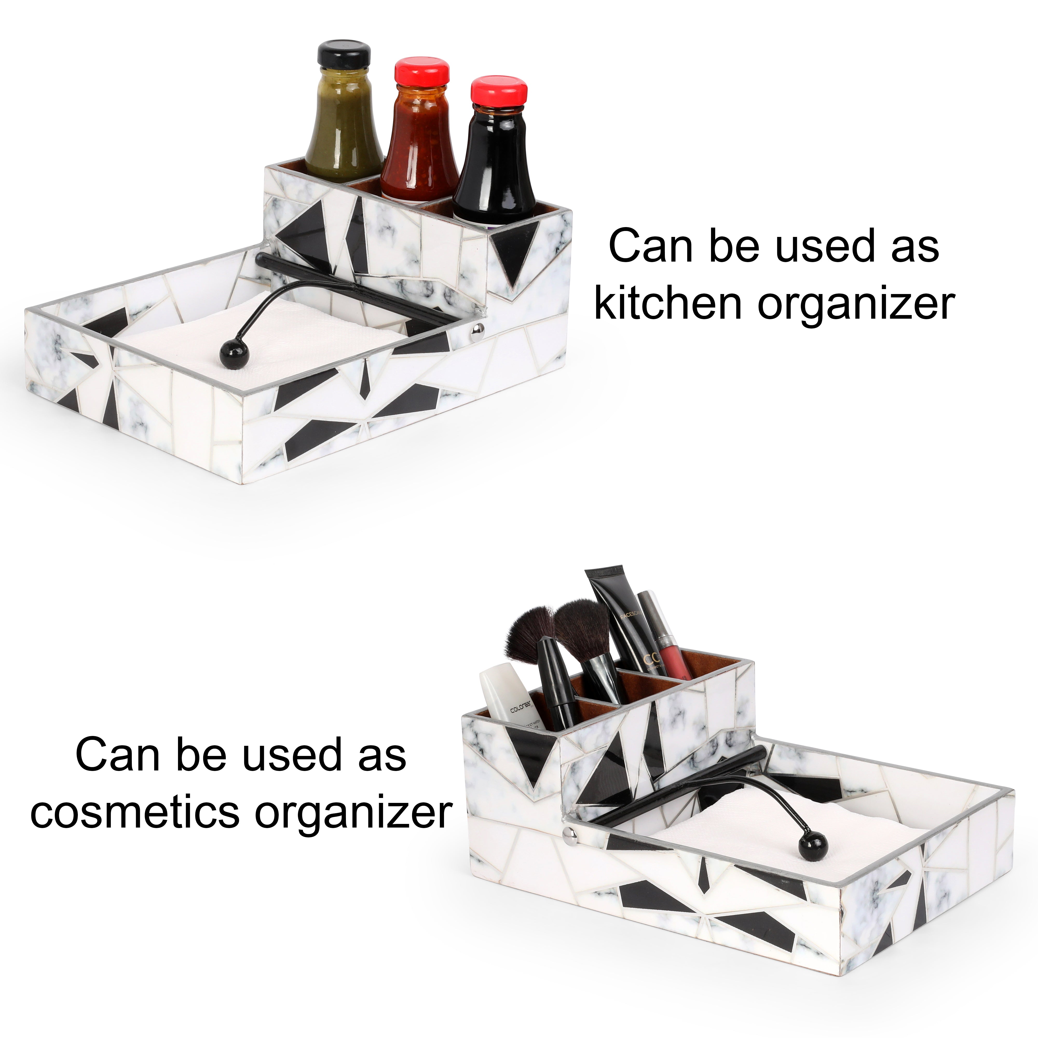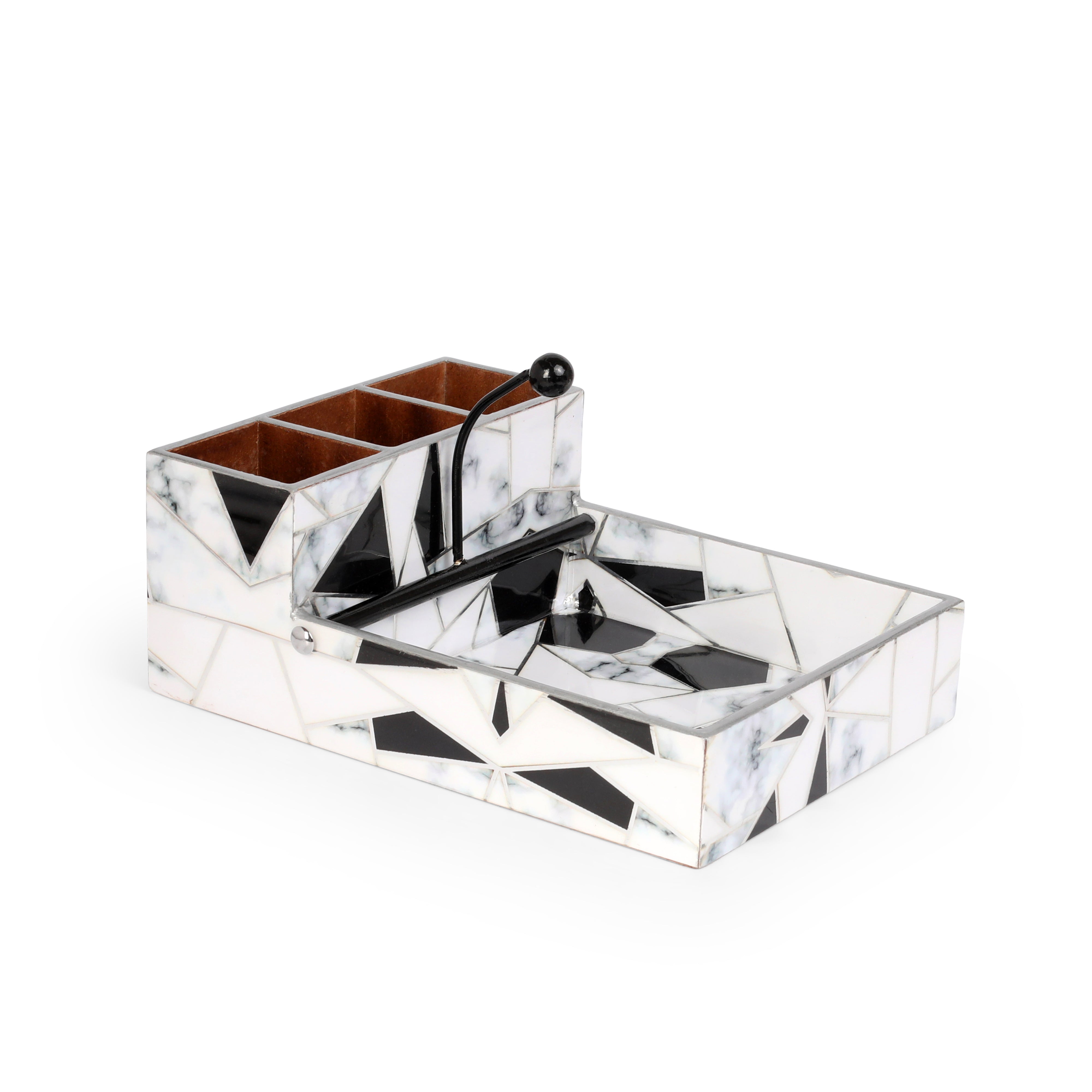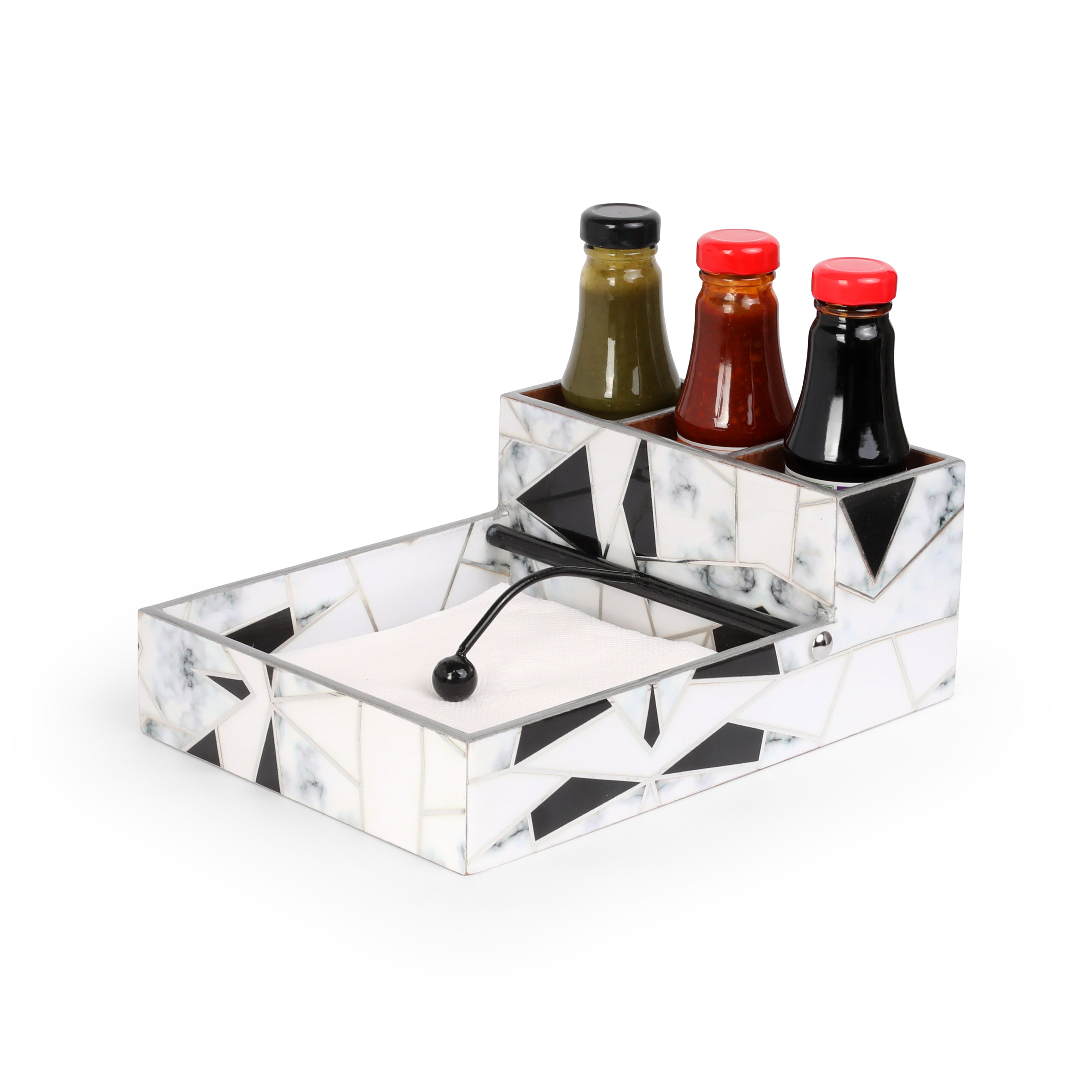 Large Cutlery Tissue Holder - Grey White Triangle