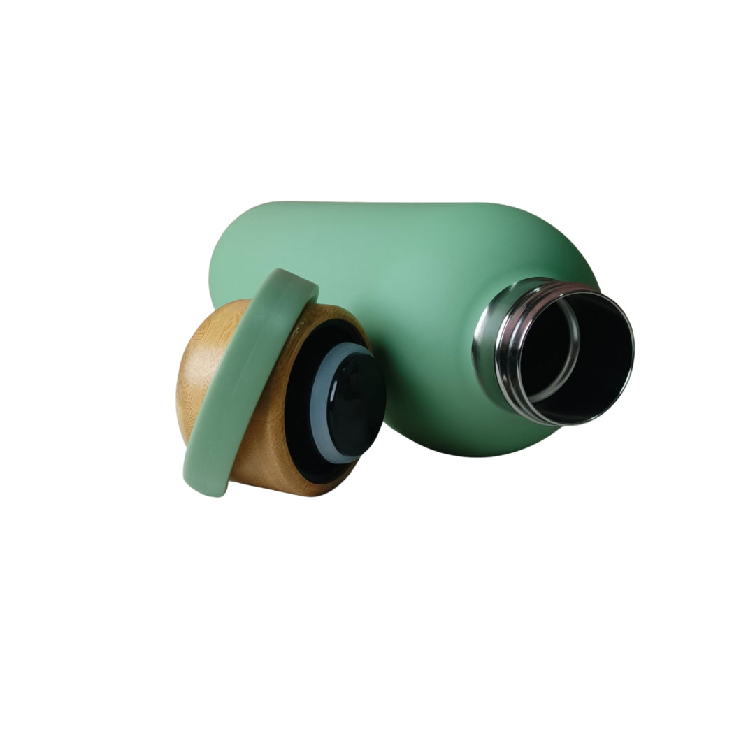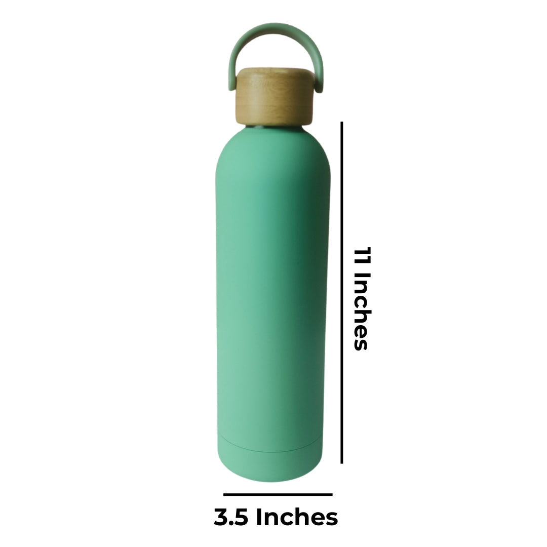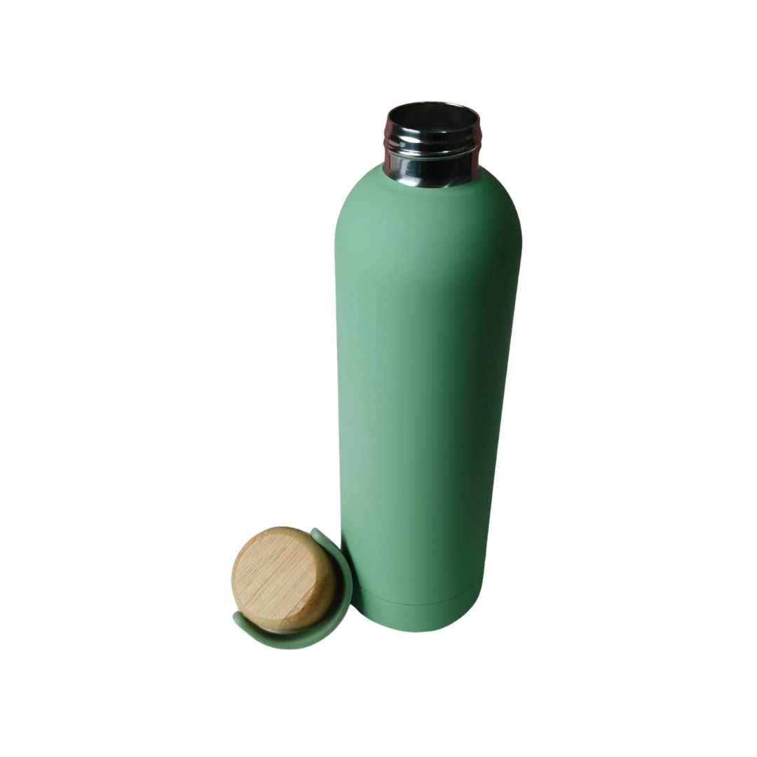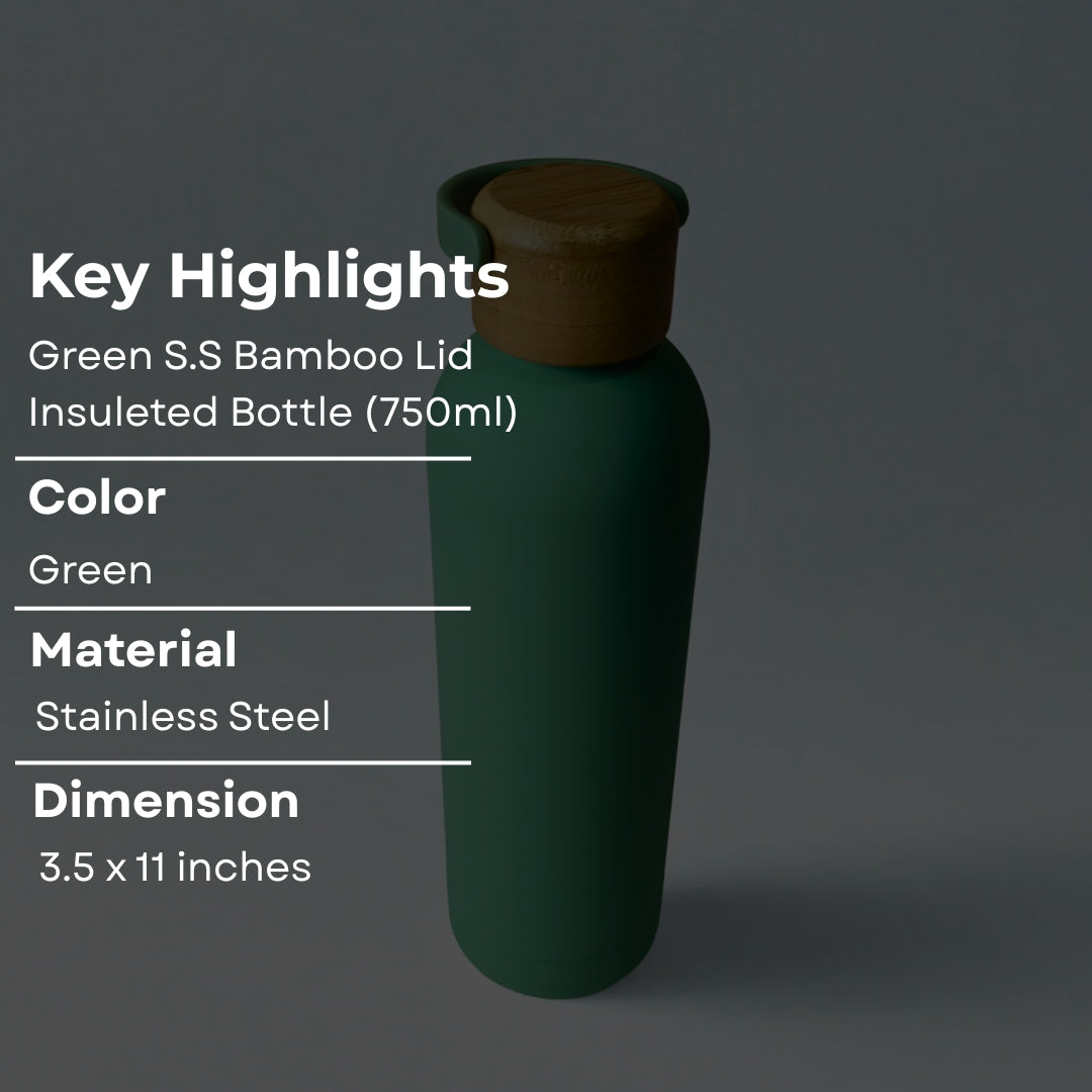 Green Stainless Steel Insulated Bottles With Bamboo Lid And Handles(750ml)