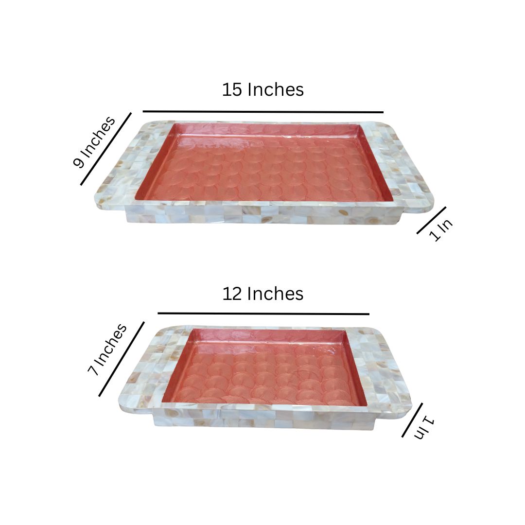 Rectangle Tray Set Of 2 - Wooden with White mother of pearl & Peach enamel