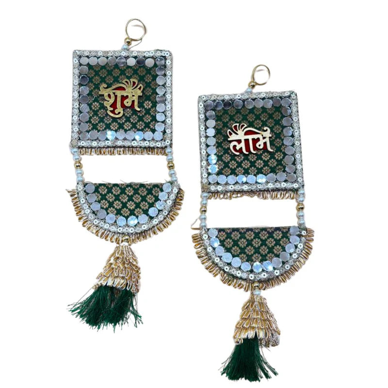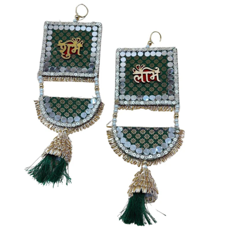 Side Hanging Set Of 2 - Brocade Shubh Labh Green Large