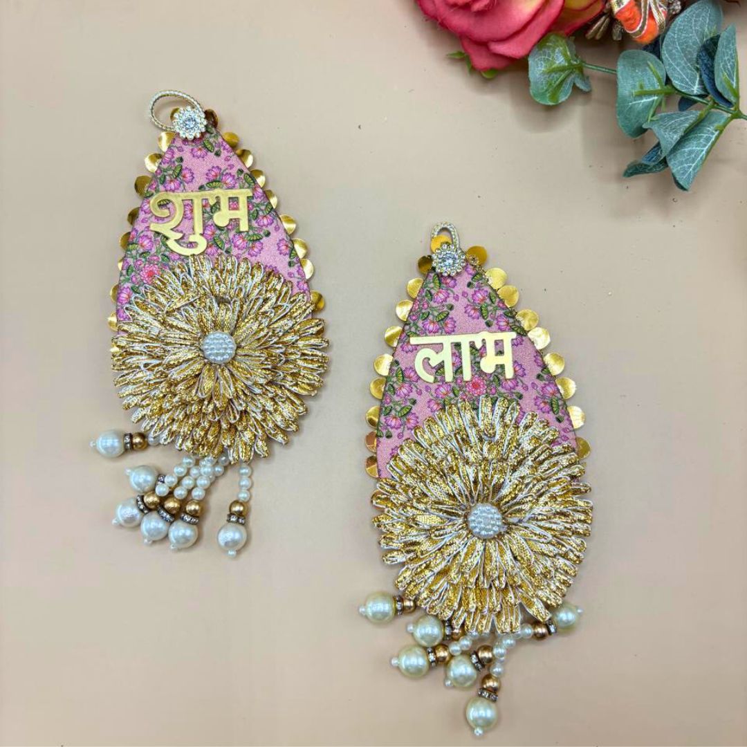 Side Hanging Set Of 2 - Pink Brocade Shubh Labh