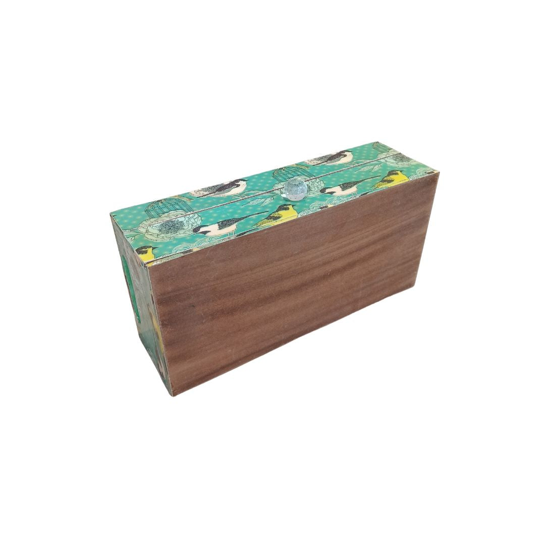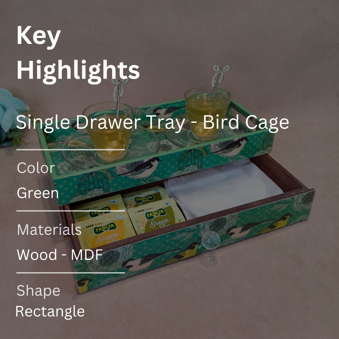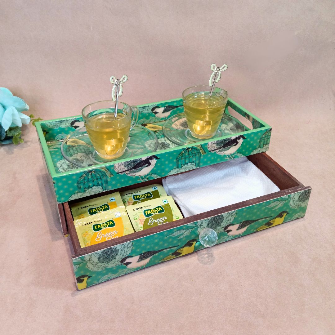 Single Tray - Wooden Tray With Drawer Bird printed & Enamel