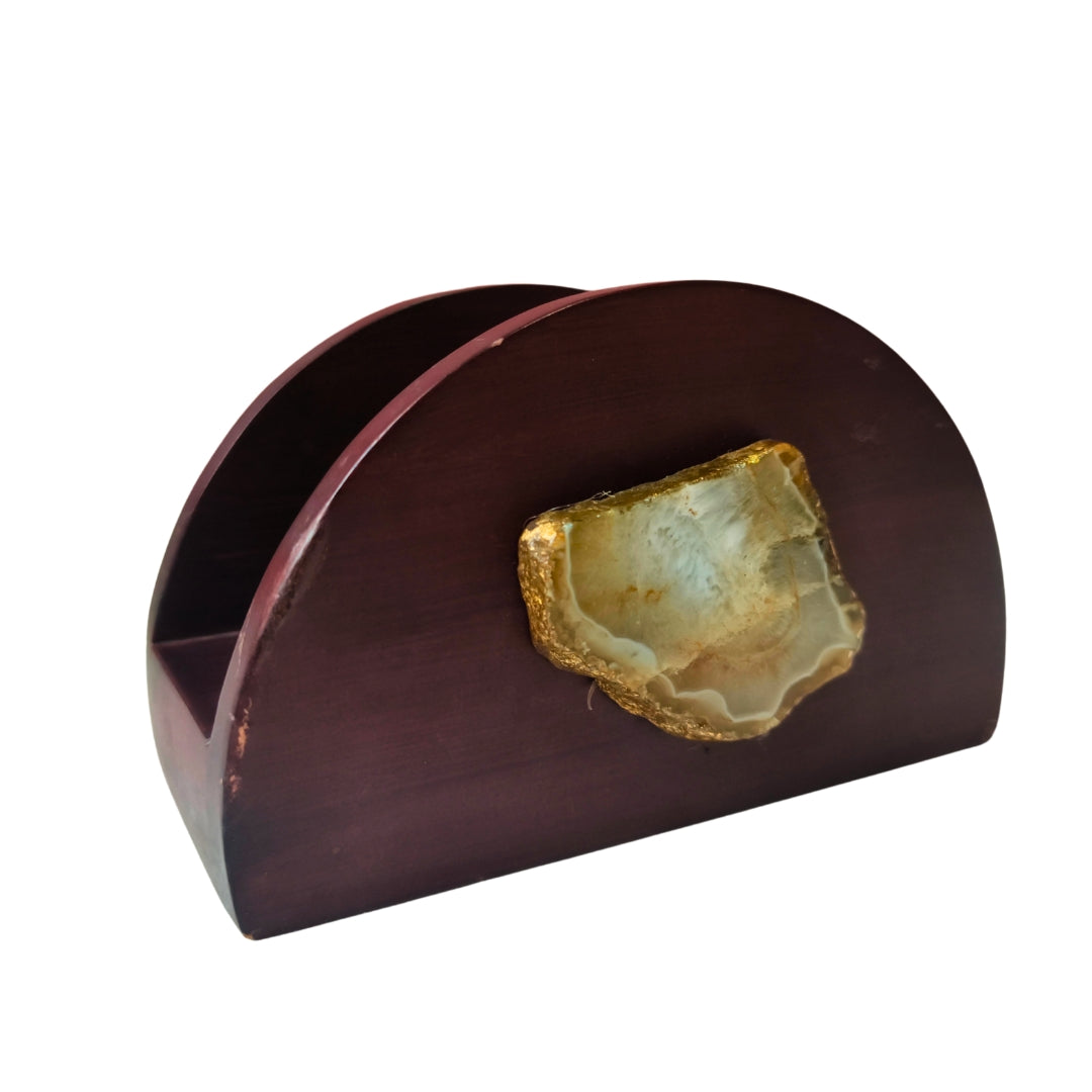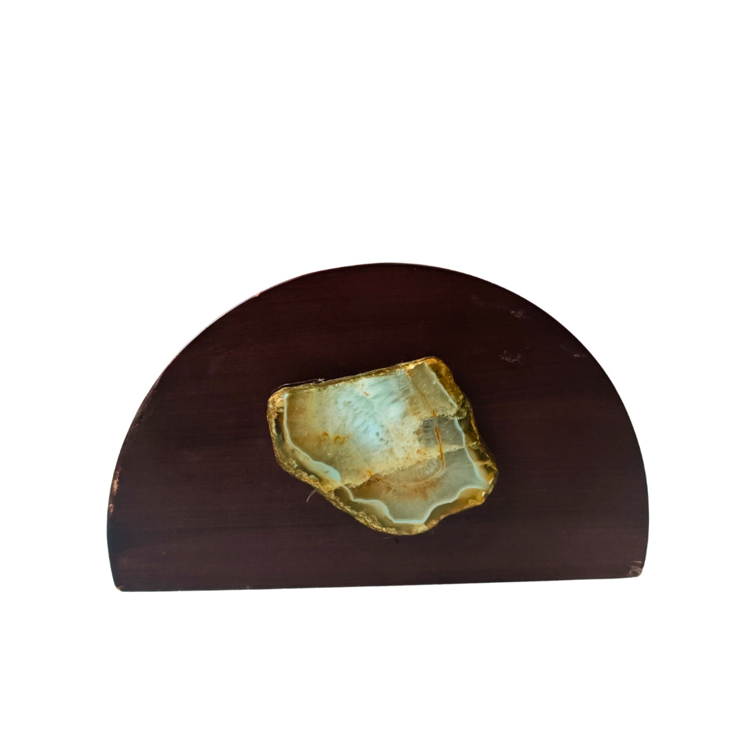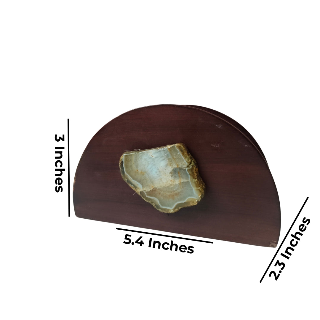 Tissue Holder - Wooden D Shape Walnut Finish With Agate Stone