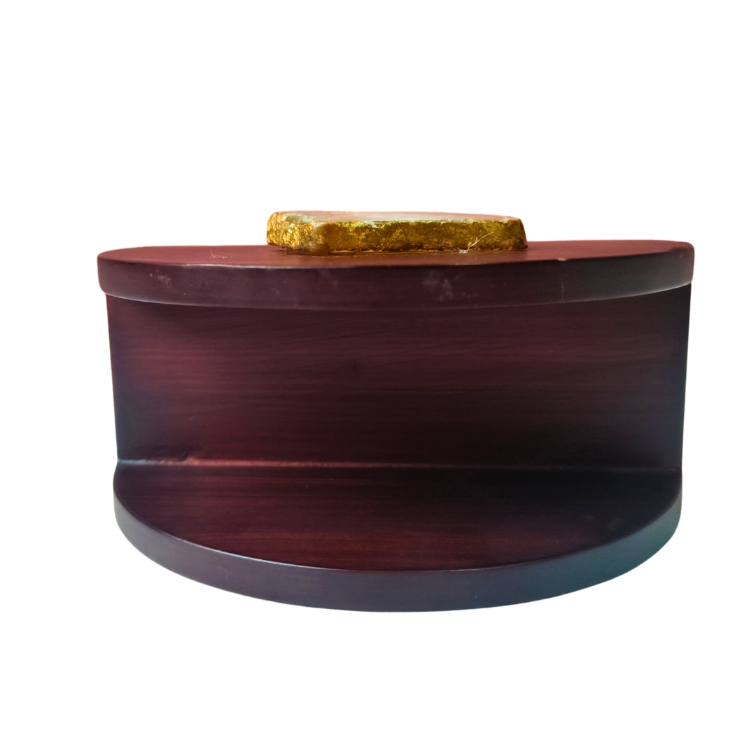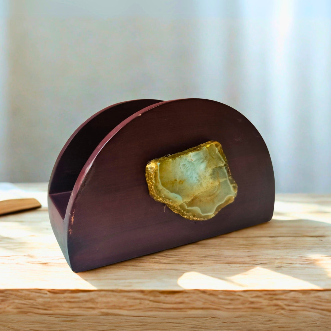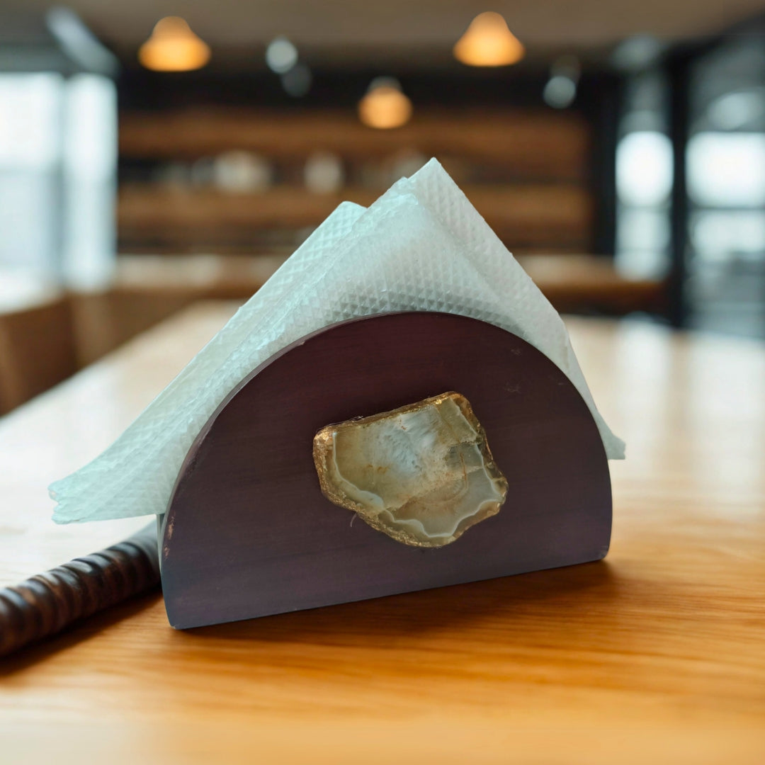 Tissue Holder - Wooden D Shape Walnut Finish With Agate Stone