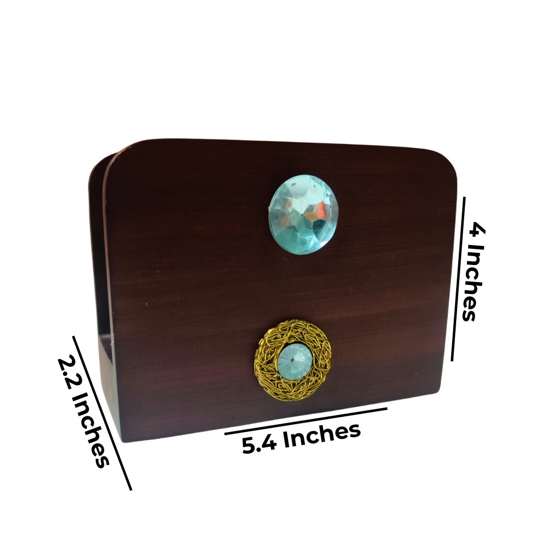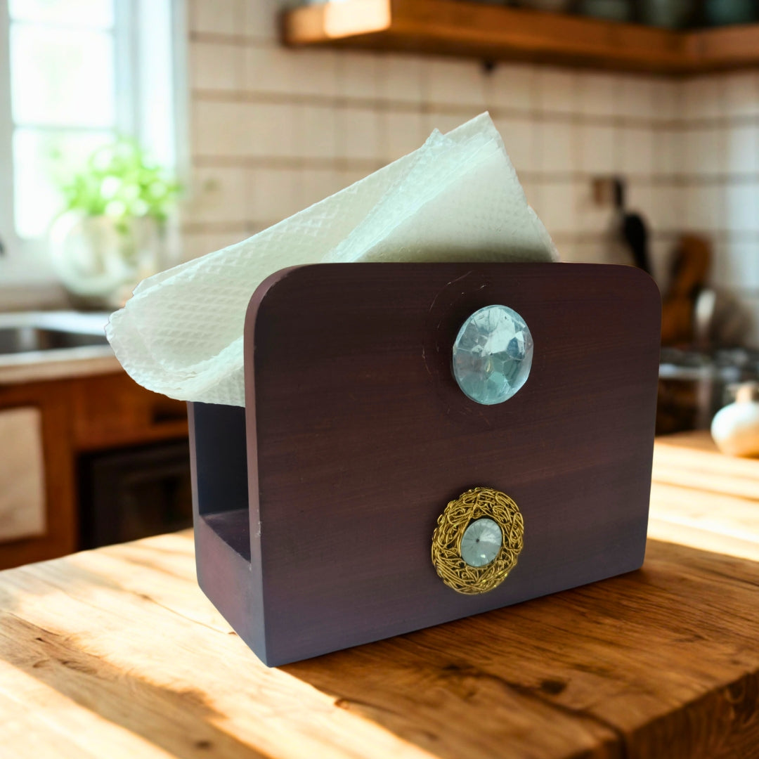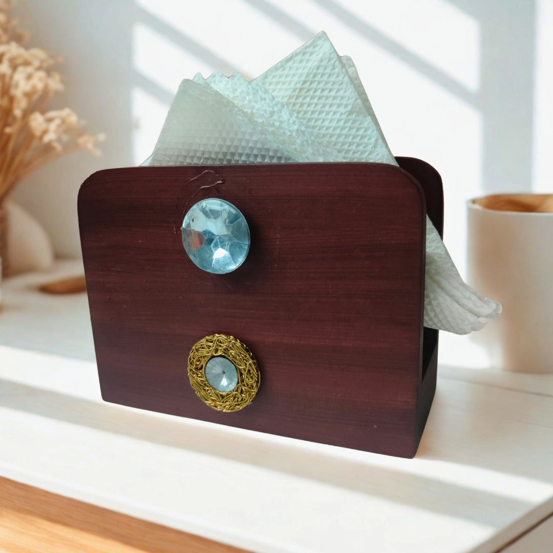 Tissue Holder - Wooden Rectangle Shape Walnut Finish With Diamond Stone