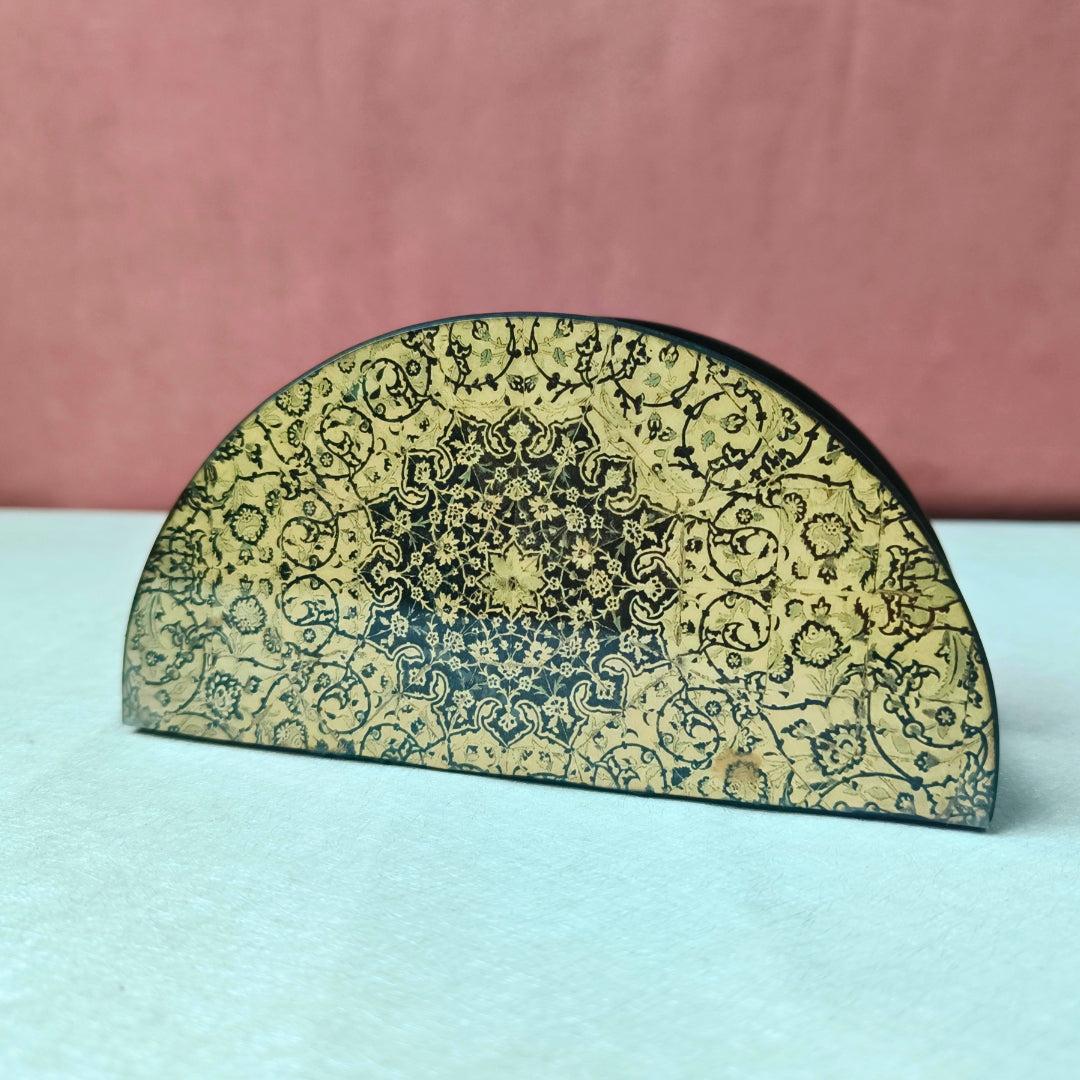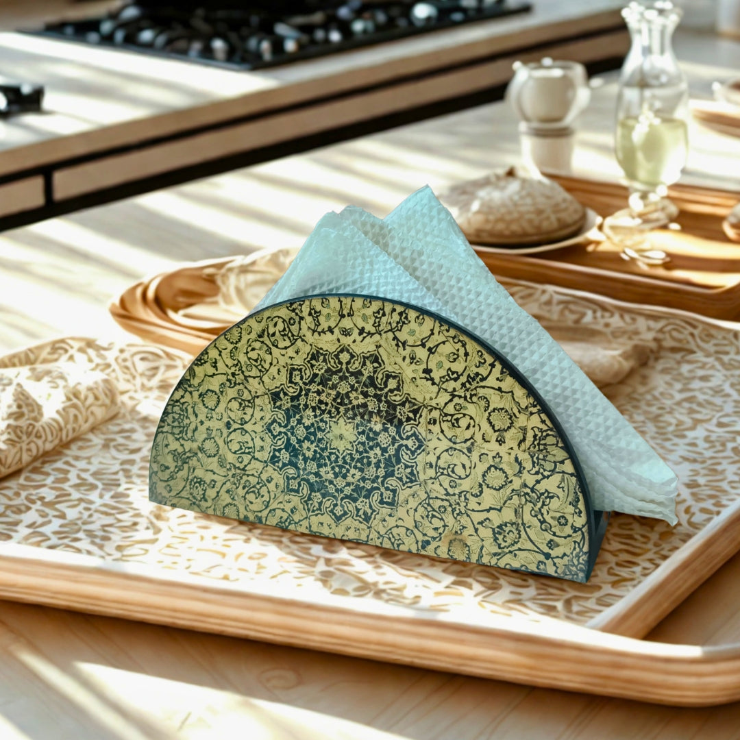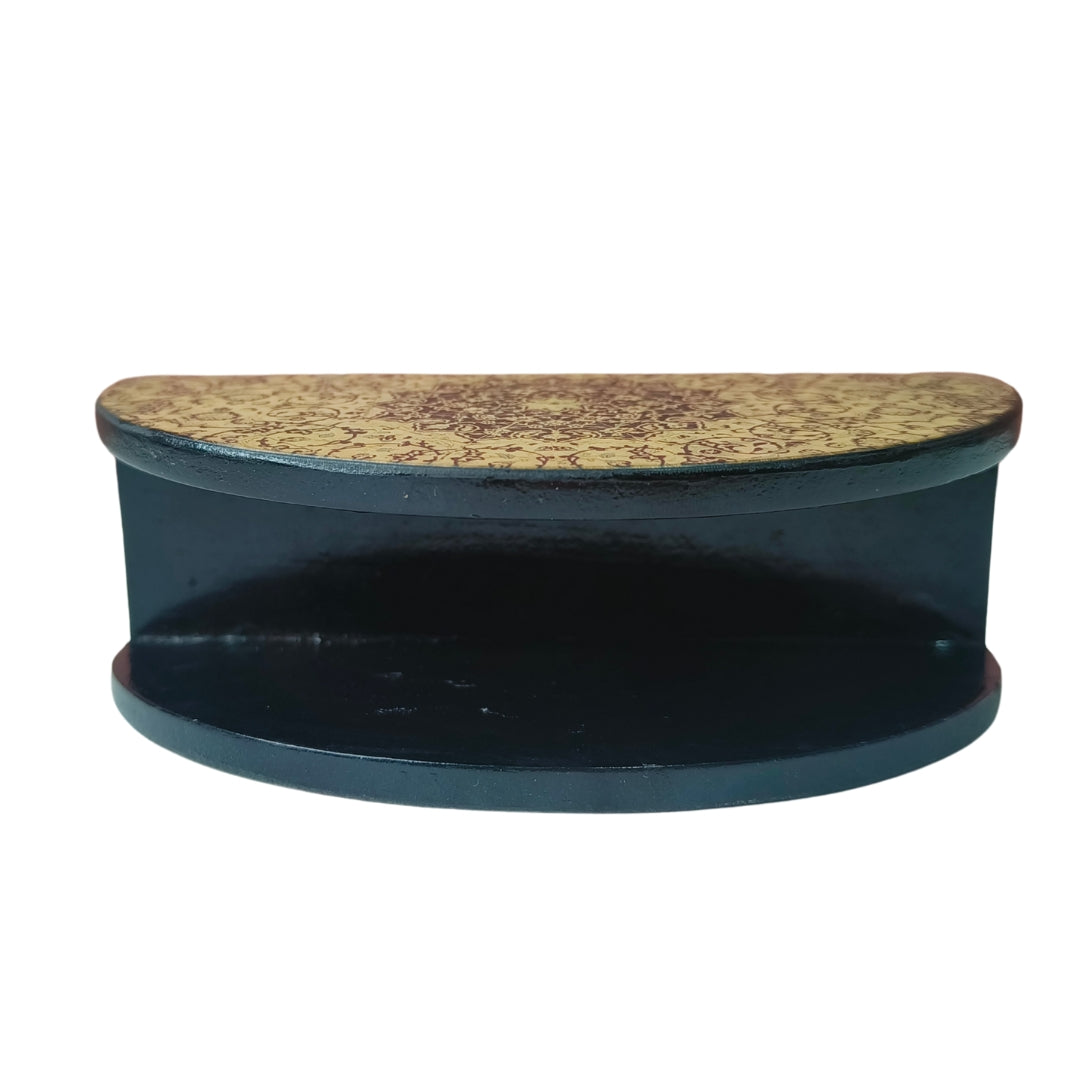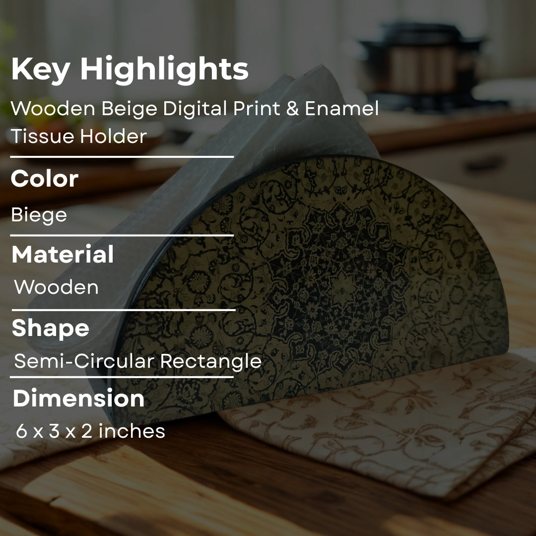 Tissue Holder - Wooden D Shape Beige Digital Print & Enamel
