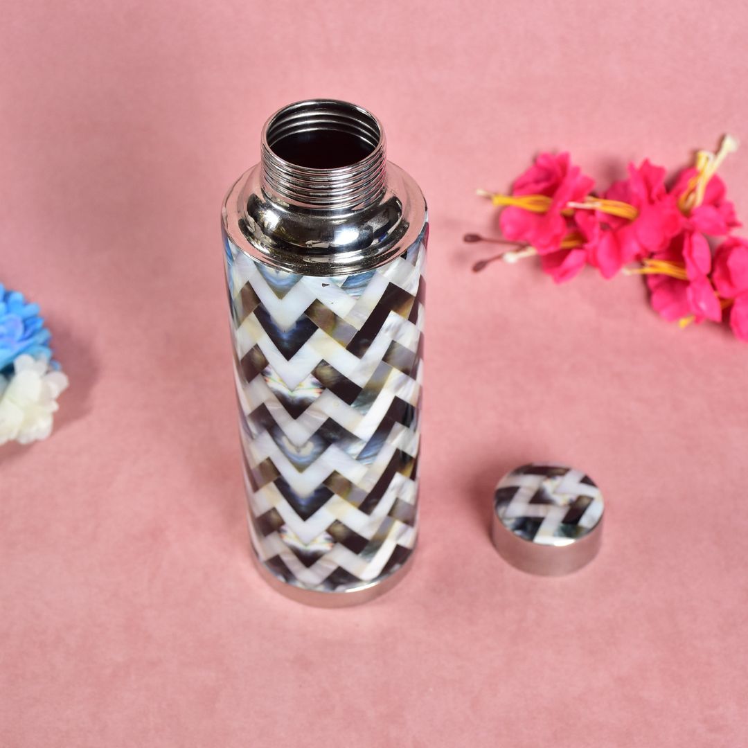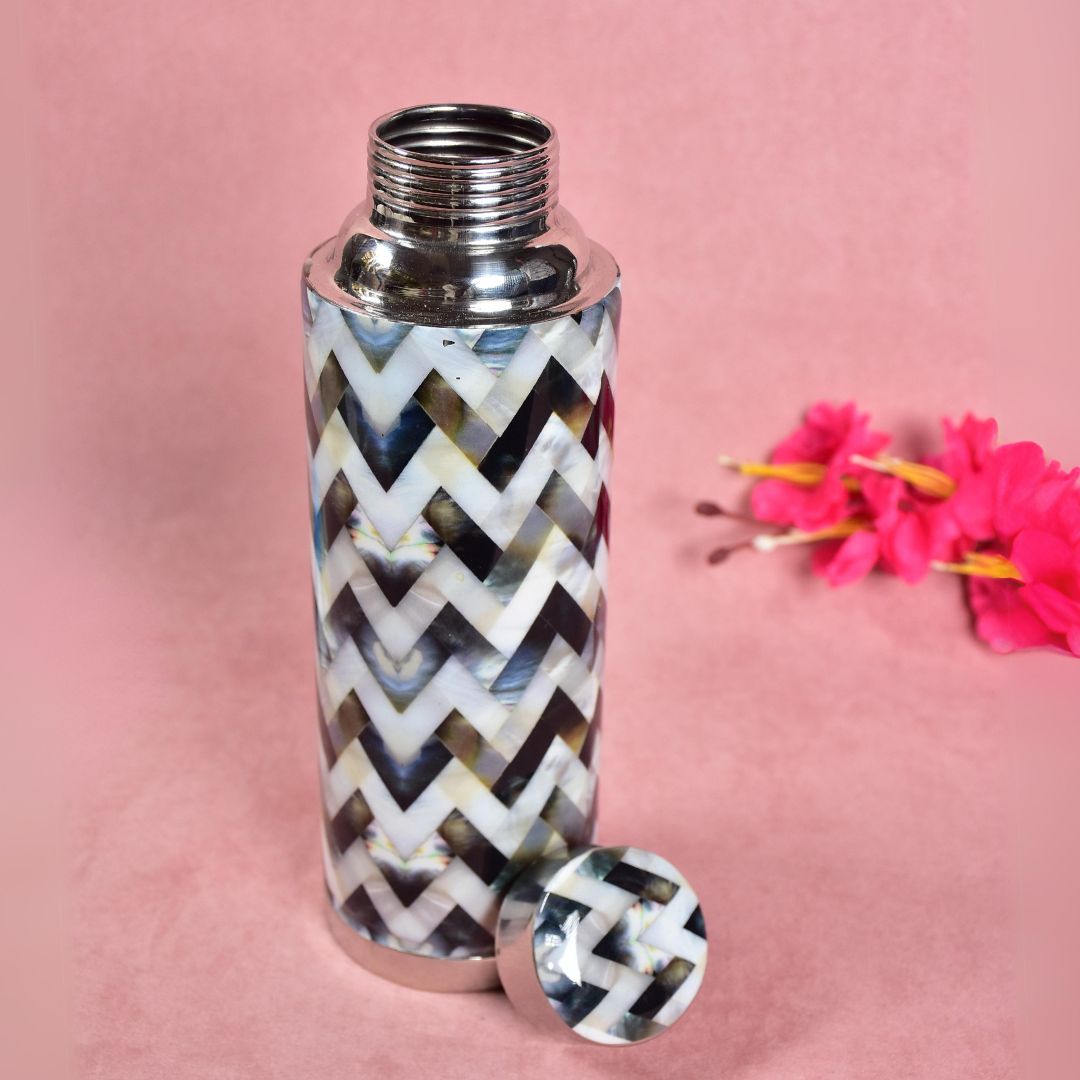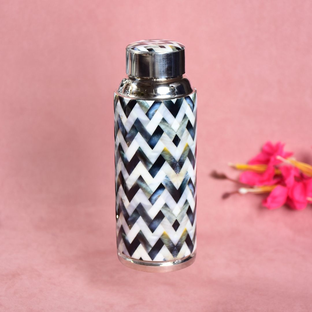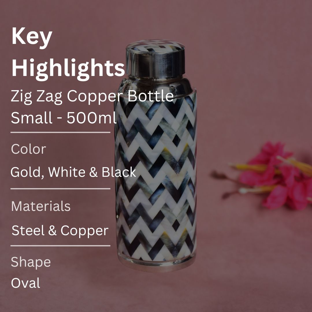 Stainless Steel Copper Insulated Chevron Print & Enamel Bottle Small - 500 ml